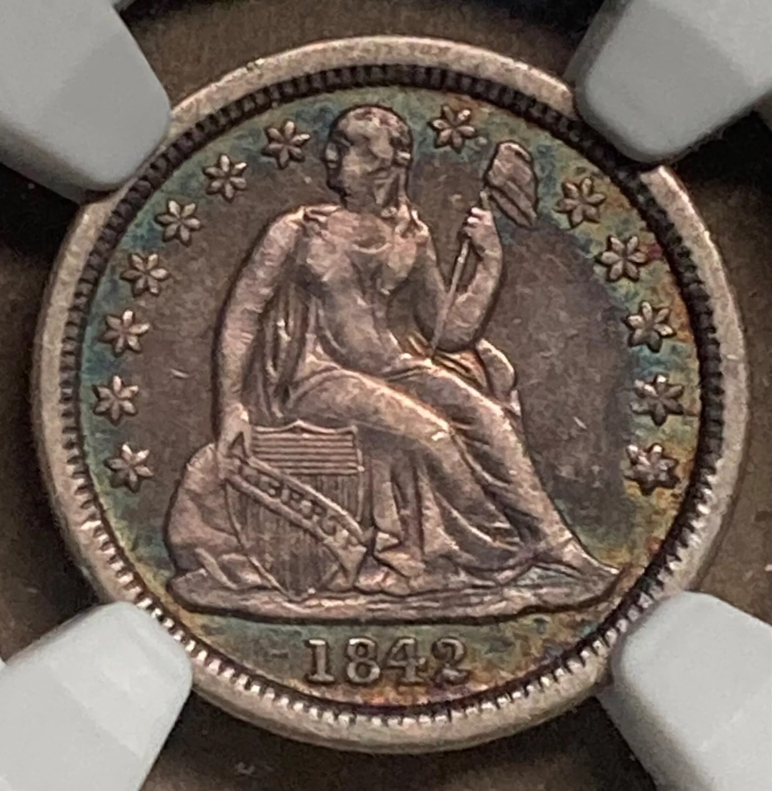yup yup with tonights win only 2 coins remain both seated dollars to be specific... But this dime has eluded me repeatedly... nothing special really 1838-1860 "stars" seated liberty dime. Until tonight every one I liked enough to add to my set sold far above what I was willing to spend... Yes she is one of the most common dates, yes I paid over list (cause you just CAN'T buy a decent looking one FOR or under list trust me I've tried lol) The rest of the 7070 can be seen here https://www.ngccoin.com/registry/competitive-sets/363344/ This dime not yet added (I'll add to set once in hand) The 1853 quarter (xf40) and half(xf45) are not shown as they are still in their ICG slabs awaiting a trip to NGC... so so close I can taste it lol