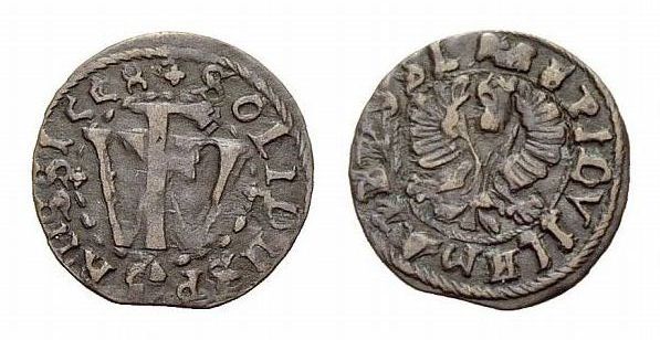This was sold as a "small German coin". Small it is, 16 mm and 0.4 grams. Obverse says (I think) "1558 Solidus", and maybe "PRUSS", with a big "FW" monogram. Can't make out the reverse except for the eagle. Standard Catalog only goes back to 1601. Anybody know what state/monarch issued this?