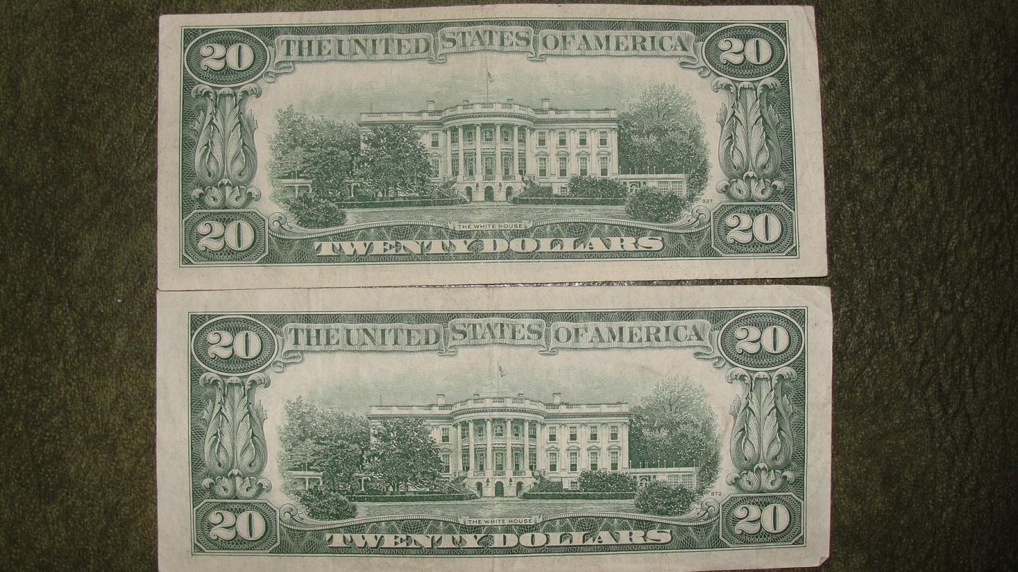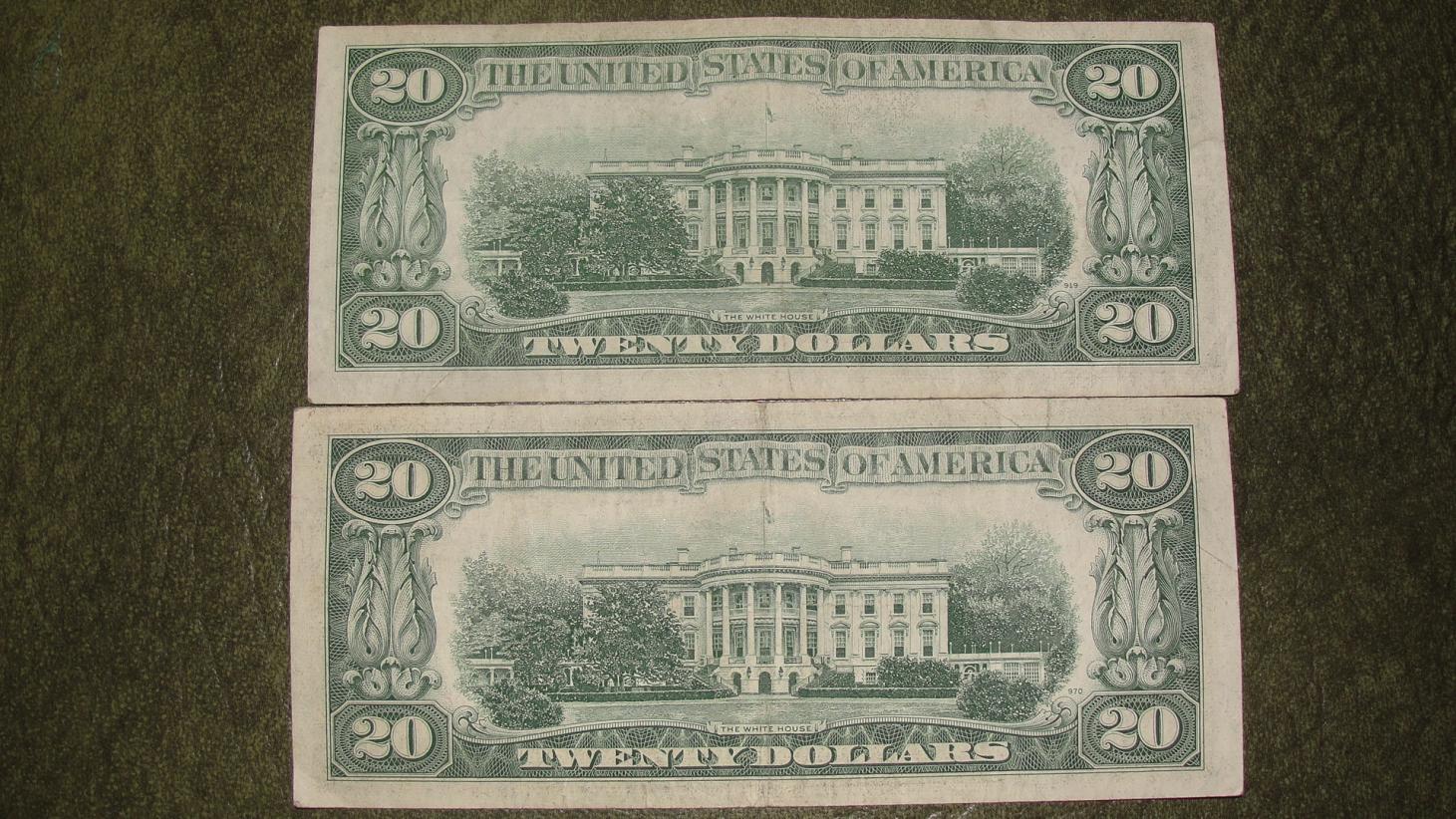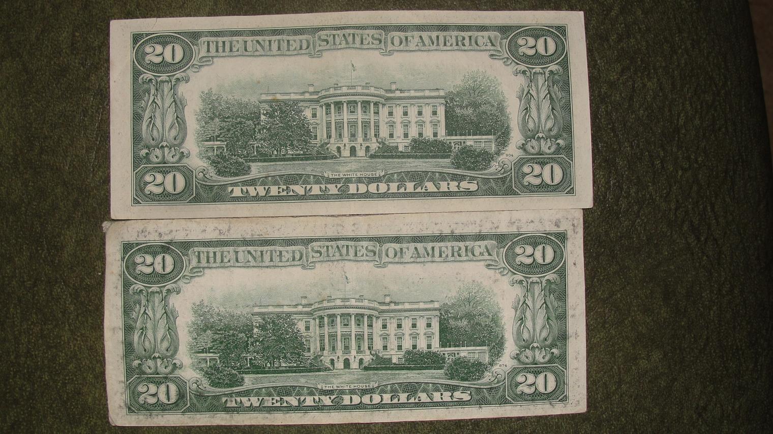 Here are two nicer series 1950B notes. The top one is another minor offset printing, and look at that S#! So close! Followed by a series 1950 note.