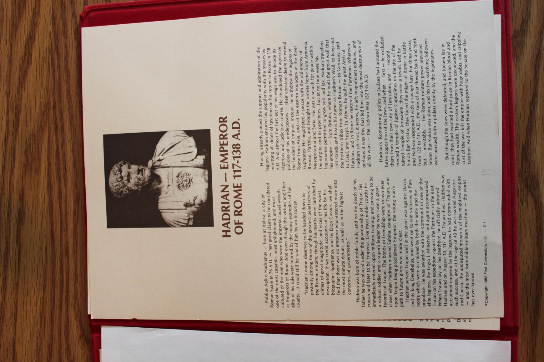 SO I have asked about some things here, and never have pics. So, I have some pics. Last week I unexpectedly bought a largish group of LRB. Here are a few bad pics representative of the quality: The lot was 500 or so coins. The quality really is quite nice, but the photos bad. Most are Constantine and family, and Valentinian and Valens. I would grade the worst as good Fines, with most VF with some XF's in there. I would say these pics are pretty representational of the lot, especially pic 1. These are really bad pics, but you can see the level of detail present. Not the typical Ebay junk, but still quite a few more common LRB's than I really need. There is quite a bit of repetition, though, with them appearing to be made up for a dealer promotion. THe Valens and Valentinians especially are only two types each, one with an Angel and the other the Emperor dragging captive with a staff with ChiRo on it. The others are more diverse. My wife is thinking about getting into Ebay, and maybe these will go on there. What do you guys think? Good Ebay fodder? Here is something else I talked about. I bought this last year just for the coins, but now feel bad tossing the old paperwork with it: In this book is three denari, Trajan, Hadrian, and AP. I just feel bad tossing this paperwork. Should I?