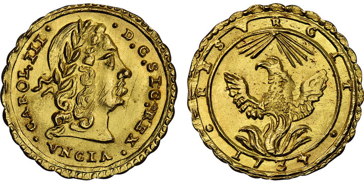 Does anyone know what the letters VNCIA on the coin below mean? The seller calls it a value. ITALIAN STATES. Sicily. Carlo III (VI). 1734 AV Oncia. NGC MS66. Palermo. CAROL. III. - D. G. SIC. REX. Laureate head right, value VNCIA below / RESVRGIT. Phoenix rising from flames, rays streaming from above, date in margin below. KM 135; Friedberg 885; MIR 514/2. https://www.ngccoin.com/certlookup/4463233-014/66/ https://www.ngccoin.com/certlookup/4463240-011/66/
