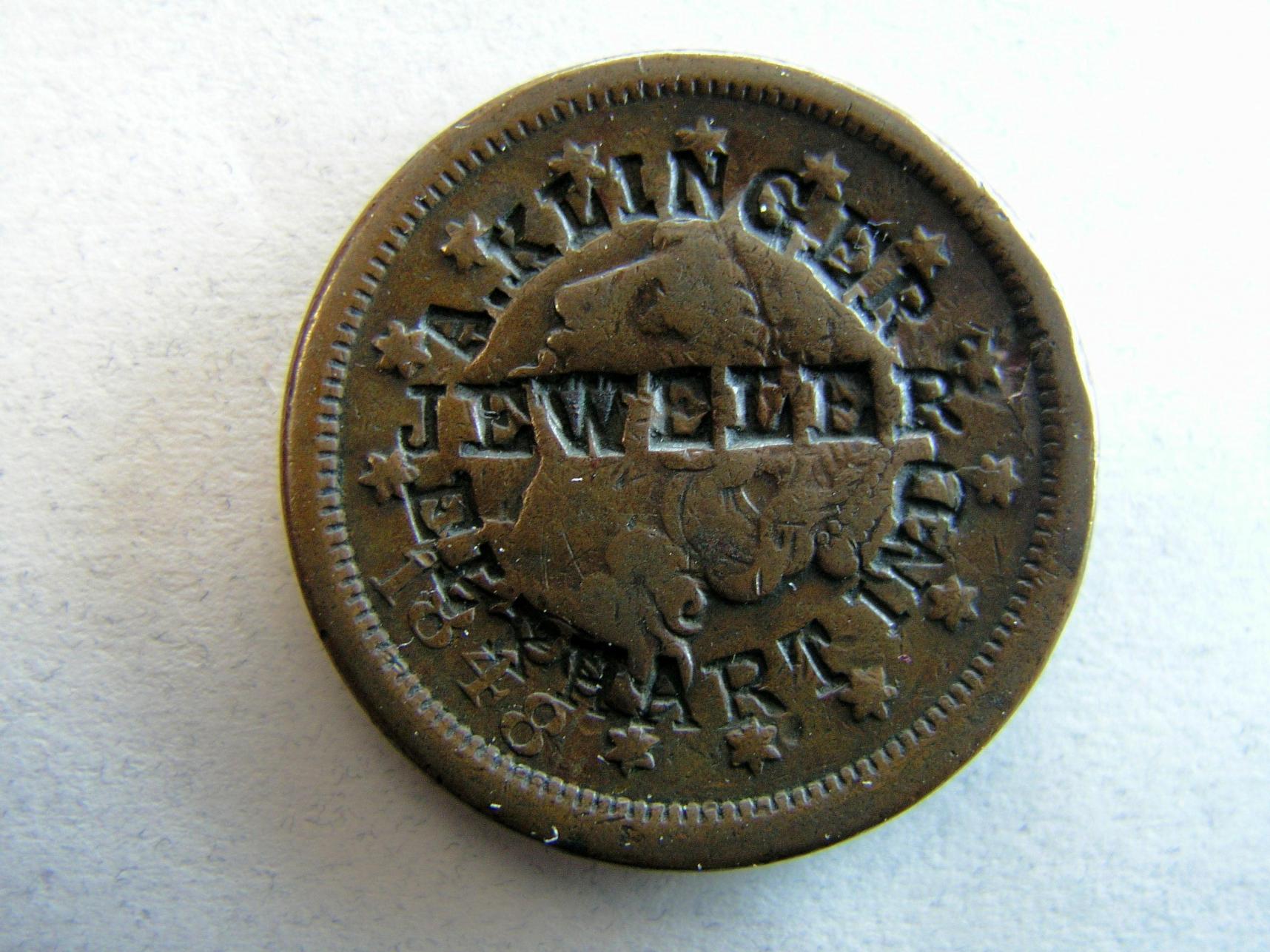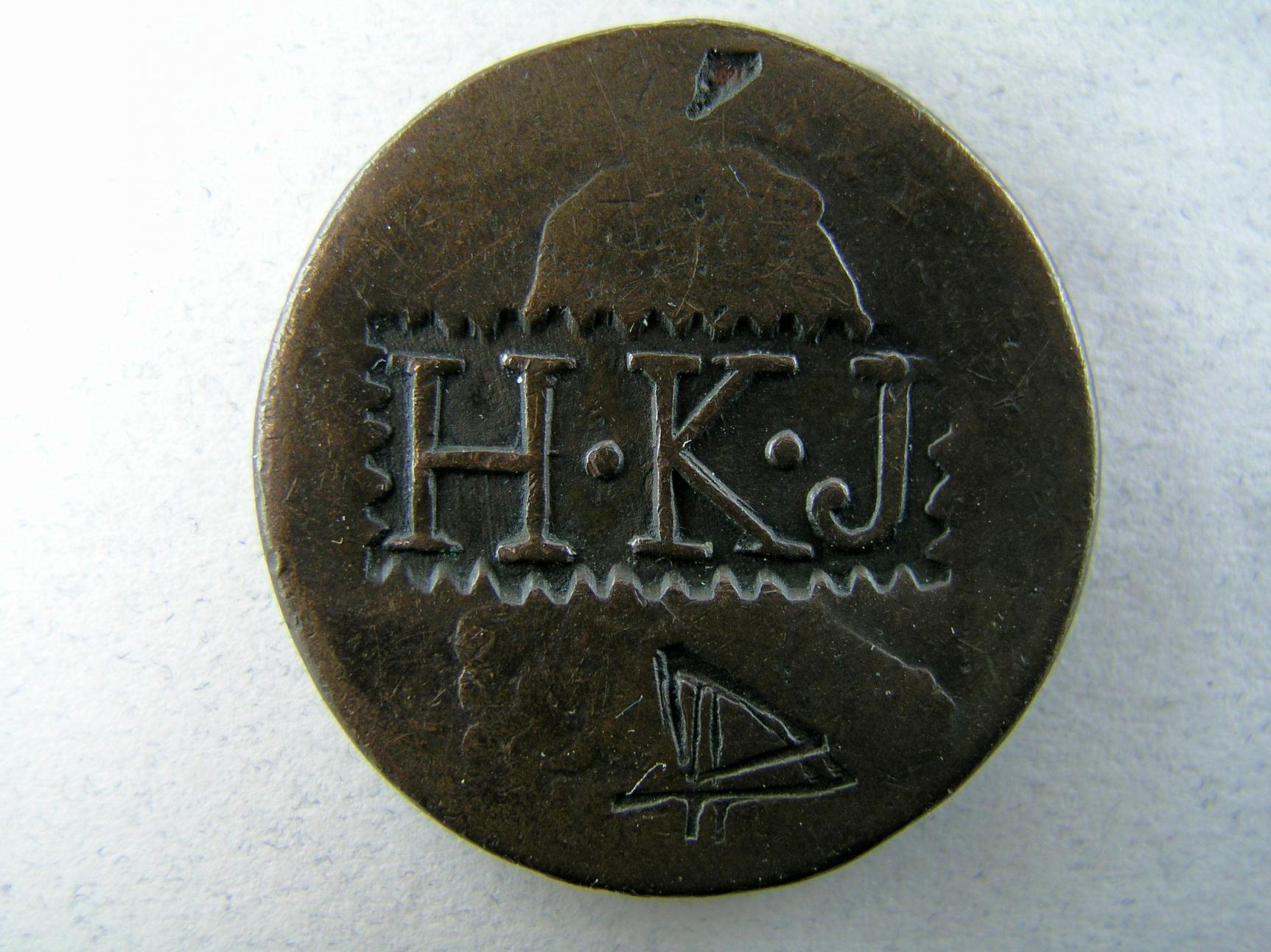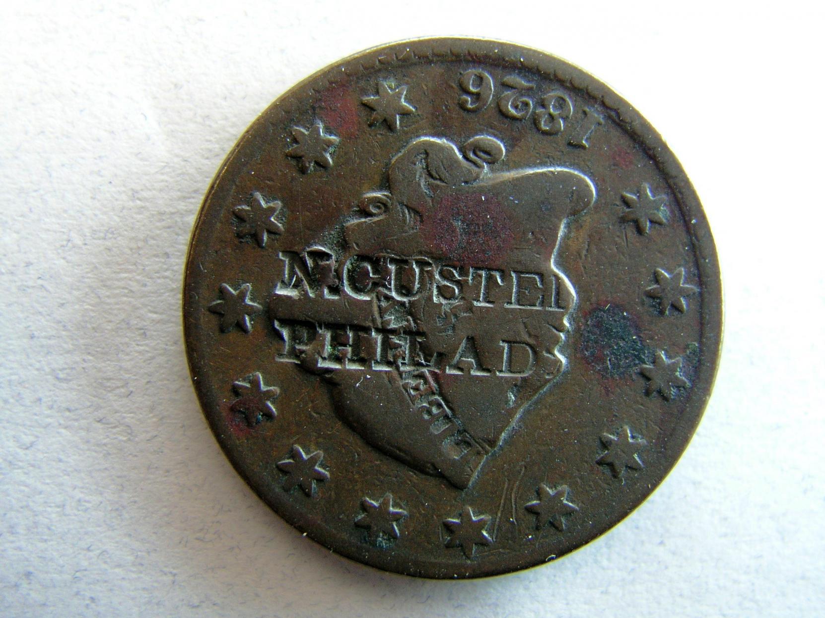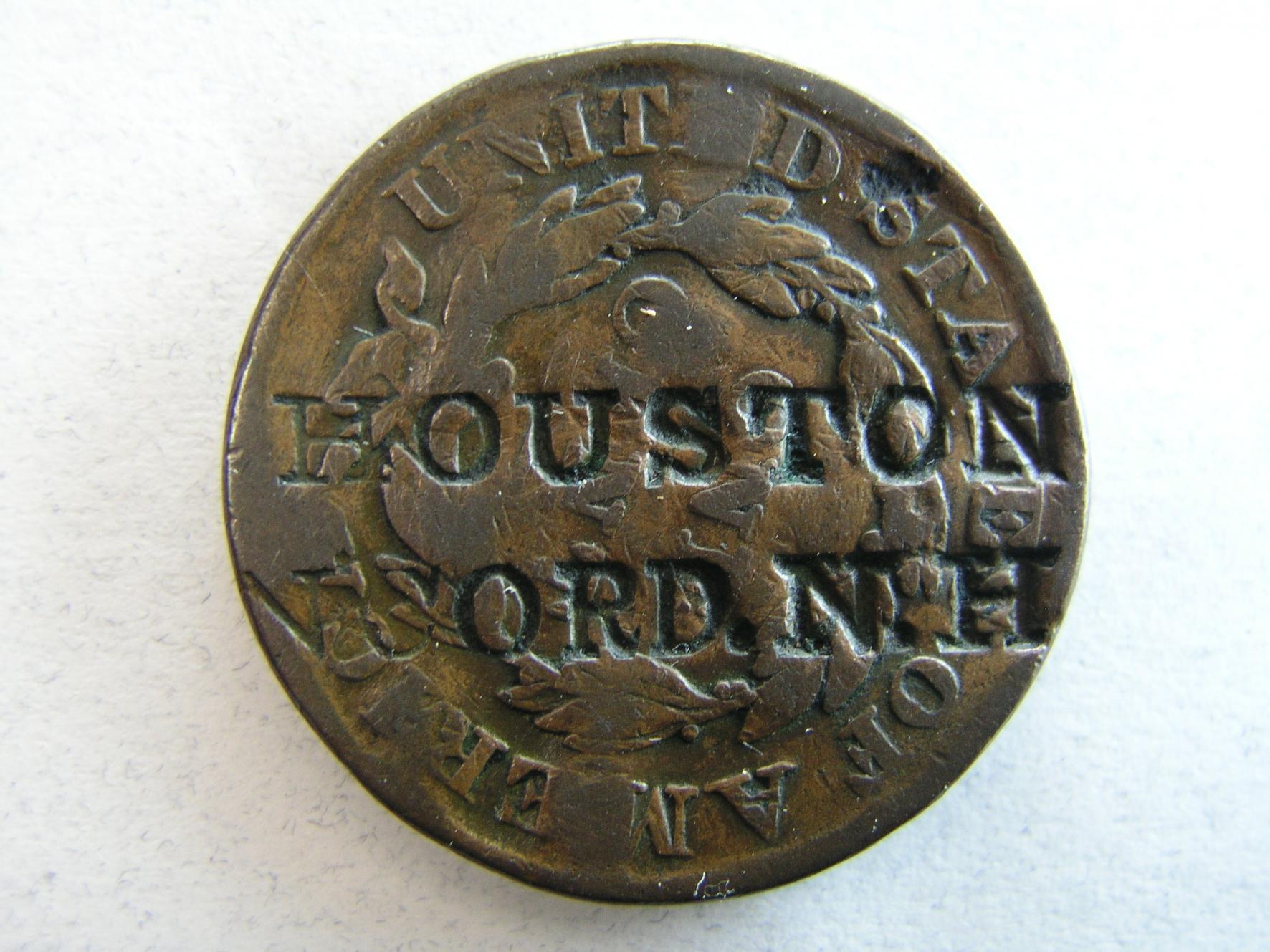 I finally had a chance to take pics of the other four lots. 1. "Houston / (Co)ncord, NH". This was issued by Harry Houston, a blacksmith and carriage maker working from about 1830 to 1860. This particular counterstamp was probably struck in the 1840's. The coin is heavily worn, but appears to be an 1835. This piece is unique. 2. "N. Custer / Philada". Nathaniel Custer was a white and blacksmith in Philadelphia in the 1840's and 1850's. There are five examples known of this stamp. This piece was last owned by Dave Bowers. 3. "HJK". This is unlisted by Greg Brunk, but is noted in Rulau as MAV 24V. Only two other examples are documented, one on an 1800, and the other on an 1802 Large Cent. This one's date is unreadable, but is also a very early Large Cent. The maker is unknown. The style of lettering (Rulau calls it "serif-style") is extremely old, probably dating back to no later than 1810 or 1820. The placement of the period or bullet after "H" and "K" is also unique to counterstamps from this period. The multiple strikes of a sideways 4 where the date would be were probably added about the same time as the initials. There are also two large #6's punched on the reverse. The numbers are unique to this specimen only. 4. "A. Klinger / Jeweler / Elkhart, Ind" Klinger is difficult to trace, but was in Elkhart at least in the mid to late 1850's. By 1860 he was practicing in Niles, MI. There are 12 examples known of his stamp. Anybody on C/T live in Elkhart or Niles? If you do and you run into this guy, tell him I'd like to interview him. Bruce