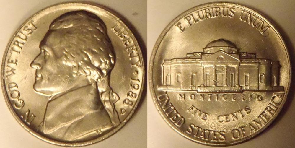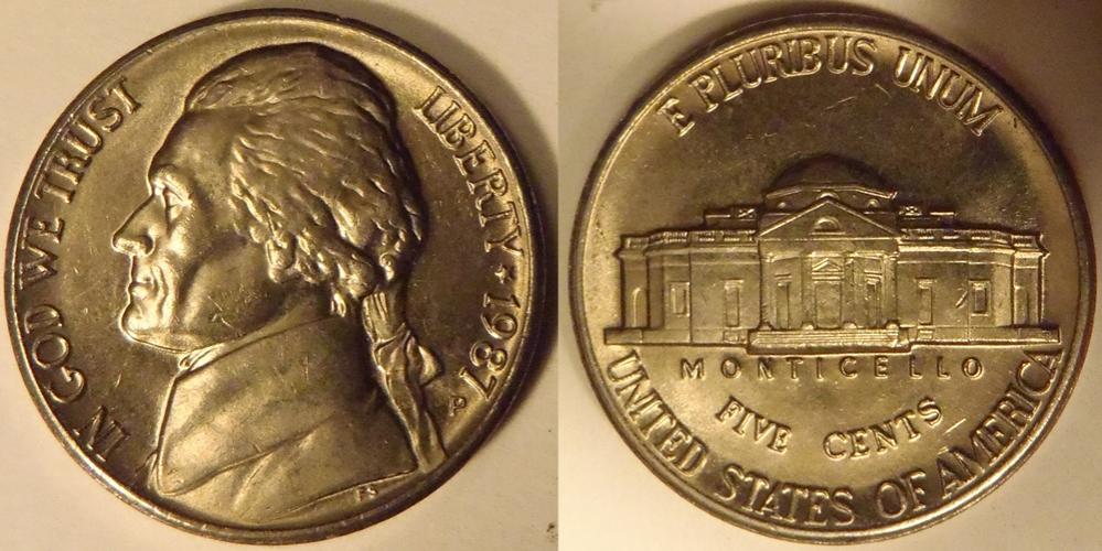 Or Liberty nickels and BU War nickels. From searching experience I notice that the 1987 and some of the 1988 dated coins have a good strike with high relief more typical of coins struck through the 1970-S nickels that were the last with the real high relief.