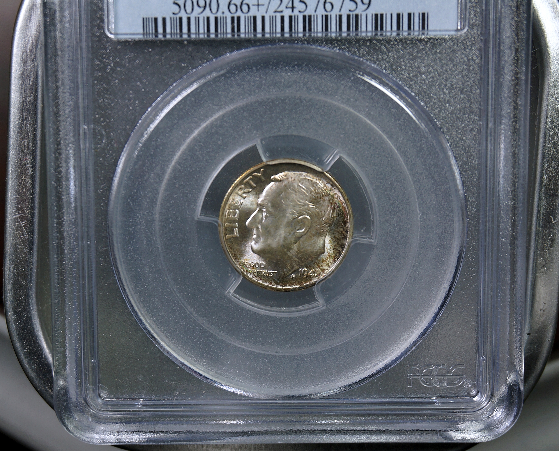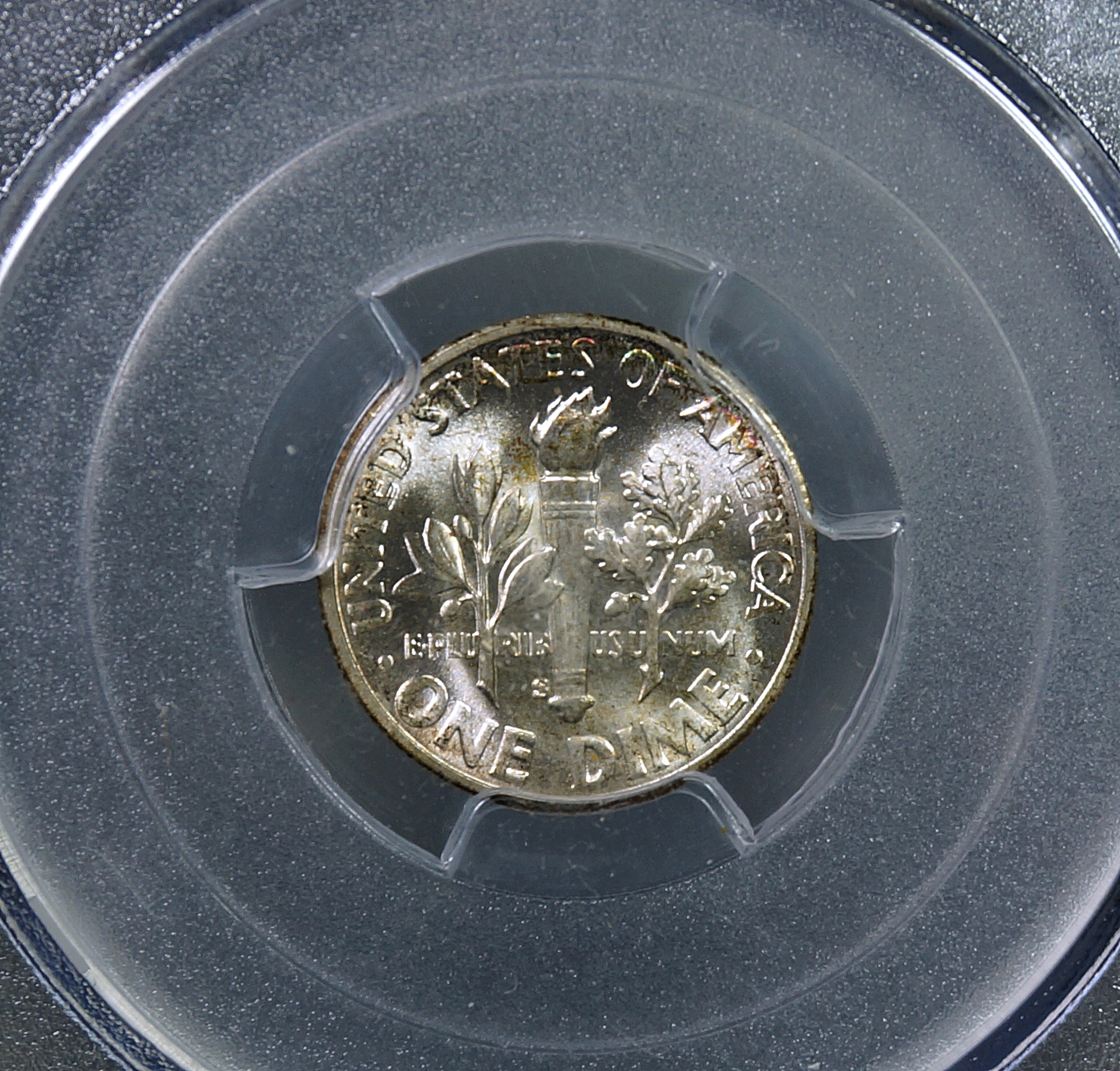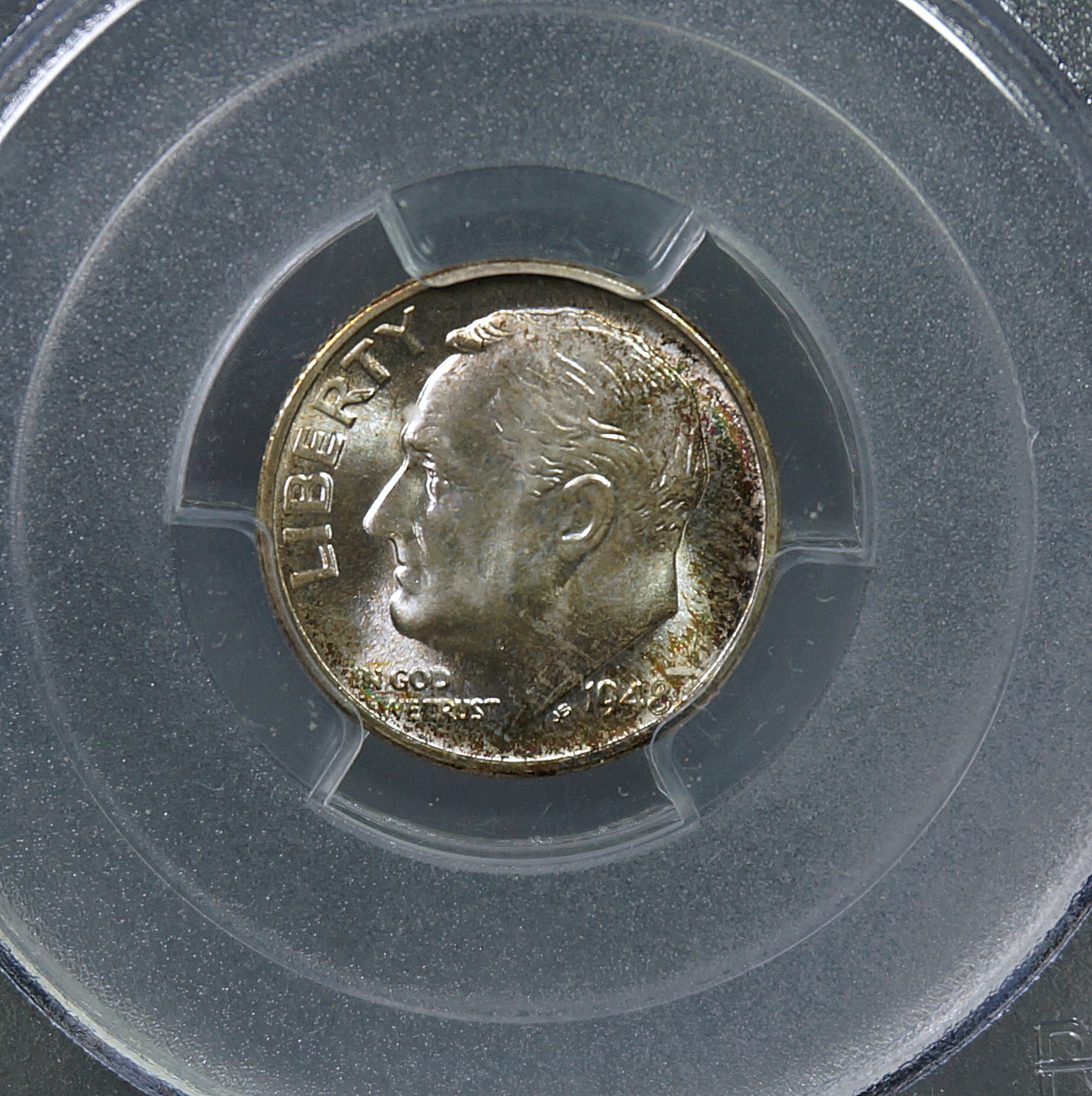 Hi all, I have a few coins for sale from my submission earlier, including a couple more. Pictures are provided when possible; where not possible, PM me for some pictures if you're interested! SOLD - PCGS 1958 50C MS66 Franklin Half Dollar (Toned) - Rich blueberry-blue toning with tinges of gold as well. Toning does not obscure luster, There is silvery satiny luster throughout. Coin is featured in its respective CoinFacts page as Coin #3: SOLD - PCGS 1958-D 50C MS65FBL Franklin Half Dollar (Toned) - Soft russet-orange tones without the typical crust seen on the obverse with a bright rainbow on the reverse (green is much stronger in-hand). Lustrous throughout! Comes with a TrueView SOLD - PCGS 1958-D 25C MS66 Washington Quarter (Toned) - Thin rainbow rim toning on the obverse with smooth green and red toning on the lower half of the reverse -- makes the eagle appear as if he's sitting on a live branch! Luster is vibrant throughout (not captured in pictures), though slightly muted in the upper half of the reverse. SOLD - PCGS 1945-S Micro S 10C MS66 Mercury Dime (Toned) - Blazing white luster, cool blue and green pastels on the obverse with a rainbow crescent on the reverse. Central bands are actually completely split, but too flat too be deemed FSB. $25 - PCGS 1948-S 10C MS66+ Roosevelt Dime - Blazing white & frosty luster throughout the coin, with faint touches of rainbow streaks beginning around the rims. Not quite sure why Frankie's bust appears muted in the pictures -- the luster is completely there and frosty! $35 - PCGS 1970-S Large Date 1C PF67RB Lincoln Cent (Toned) - Brilliant proof with a green and purple crescent on its obverse. (No picture availabe -- PM me for further details). $70 - NGC 1976-S 1C PF67RB Lincoln Cent (Toned) - Toneless on the obverse; reverse contains typical orange-red color of freshly minted proofs which slowly transitions into a cool blue; these "Fire and Ice" colors are joined together by an intermediate tone of hot magenta. Feel to PM me any questions or offers of any sort! Thanks! -CB