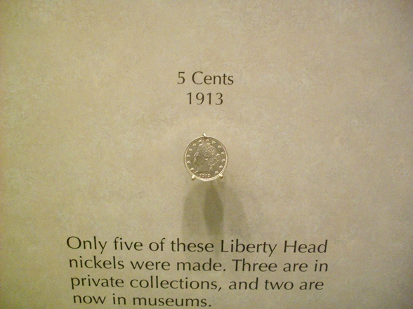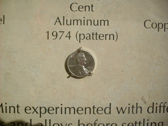 hey everyone! just got back from a little vacation in dc, and while i was there, i had to see the coins in the smithsonian. amazing! that's the only way i can describe it. if you ever get the chance to go, don't hesitate. while the exhibit is fairly small, the quality of the exhibit is hard to beat. i mean, how often do you get to see this? the exhibit is called "the story of money." it conatined examples of money that circulated in america from the 1600s to the present. i just couldn't move away from the "legendary coins" display. along with the following coins pictured, there were 3 1804 silver dollars on display and many gold pattern coins. while i was gawking over the case, my fiancée says "i didn't know they made an aluminum cent." i told her it was an experiment back in the 70s. she says "well, they have one." so, again, if you ever get the chance, be sure to check it out. just try not to faint and/or drool!