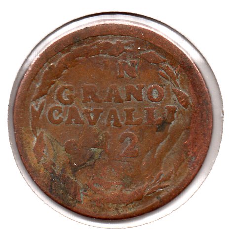 Kingdom of Sicily. Un grano (12 cavalli), copper. Ferdinando IV the King. First coin of this type was minted at 1788 in Naples. Your coin was minted at Naples too. Coins of this type were minted at 1788-93, 1797 & 1798. Mint master - Cesare Coppola. This coin was in appeal not only in the Kingdom of Sicilia, but in the Kingdom of Naples too.