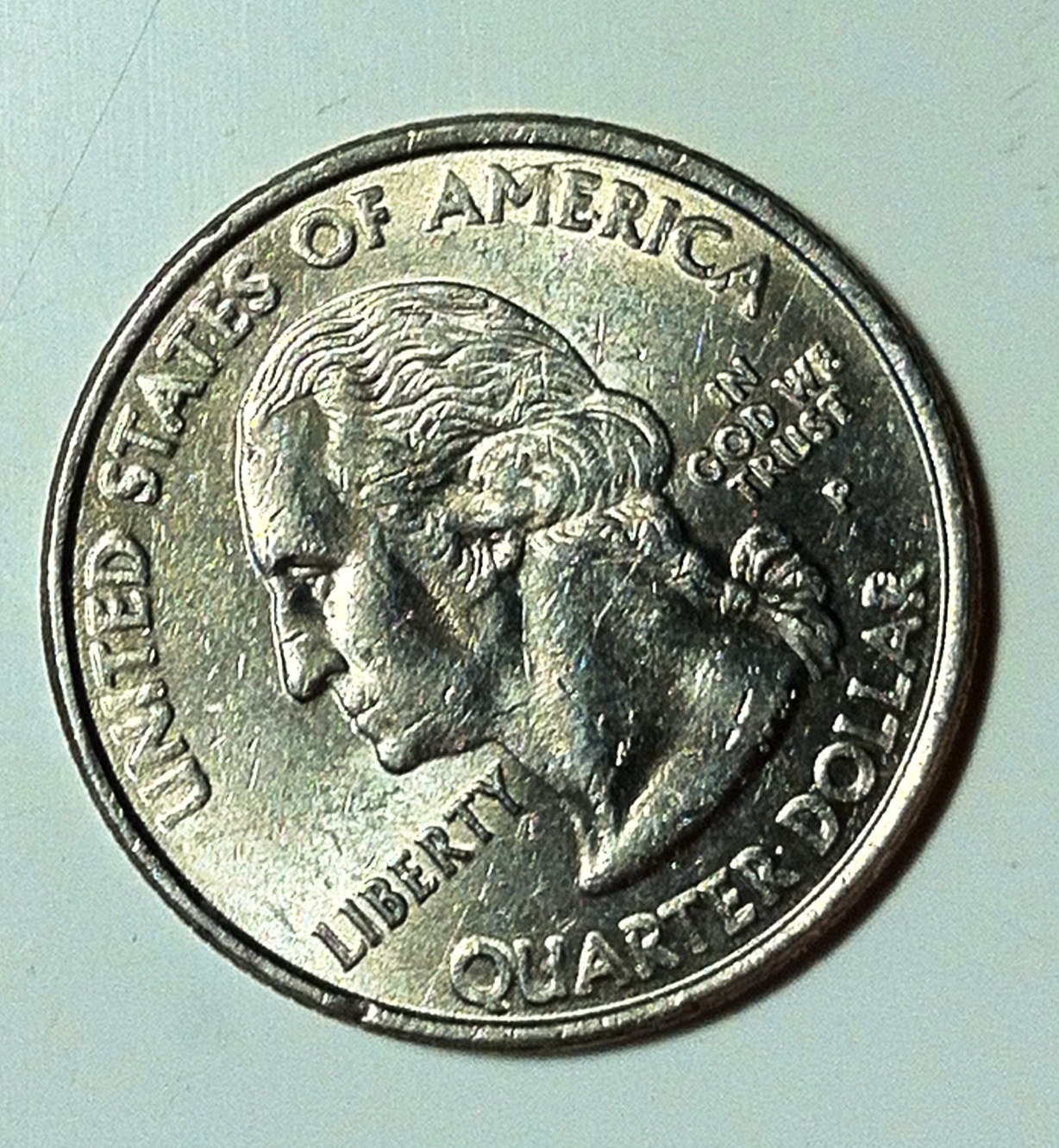 Hey can I get anyone's opinion on this State Quarter I have found in circulation. The Obverse Side in "United States Of America" also in "Quarter" especially in "Quar" thank you for any feedback.