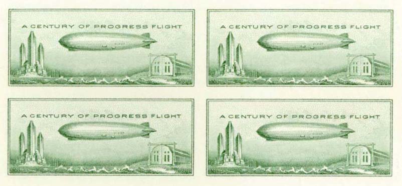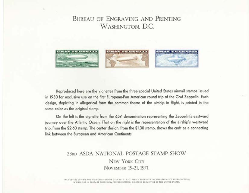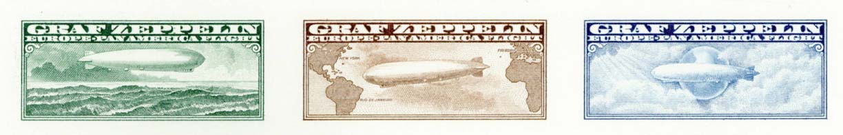 B.E.P. reproduction vignettes of the 1930 Airmail stamps used on first European-Pan American round trip of the Graf Zeppelin