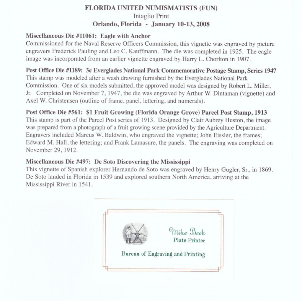 I just stumbled on to this thread and will come and view it all someday. - Wonderfull engravings! Here is a "Hand Pulled" on Spider Press BEP made at FUN 2008. It is #79 out of 100. I had to win a raffle for the opportunity to purchase it. It was fun.
