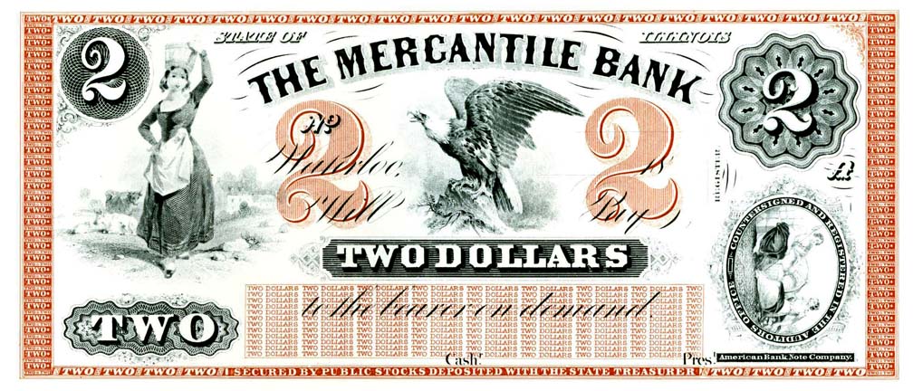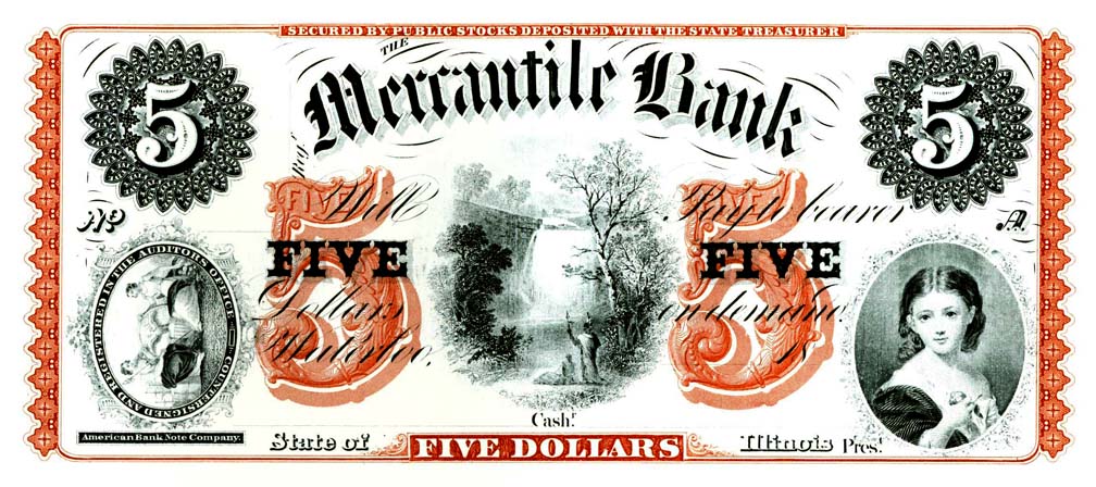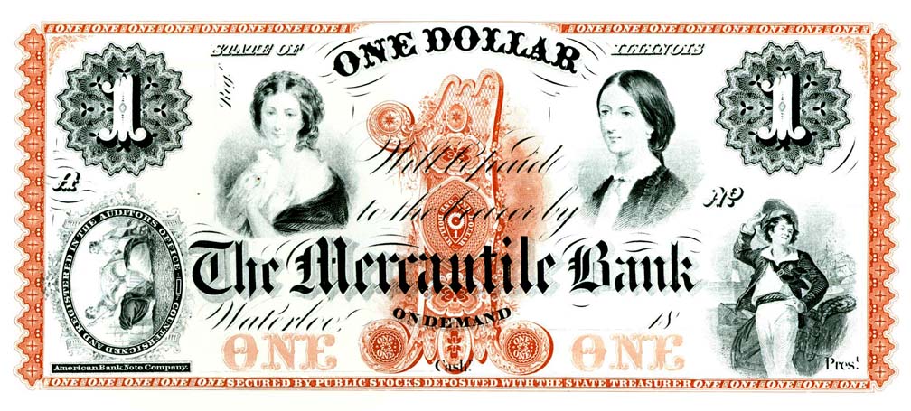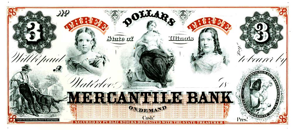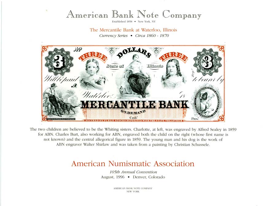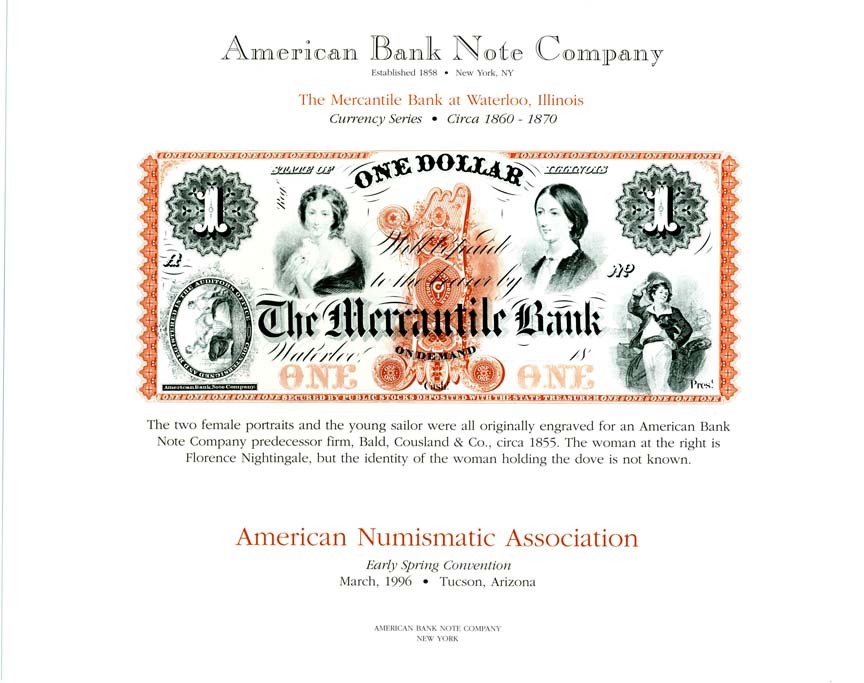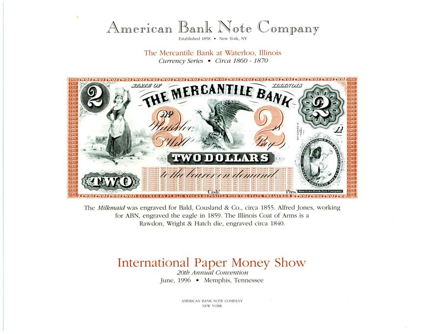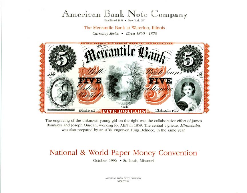 The last series featured obsolete notes from The Merchantile Bank of Waterloo, Illinois (a bit south of St. Louis). Only 300 of each card was issued and ABN charged a bundle for the series at the time. I think it was about $150 for the set of four, which I couldn't justify so I passed on buying them. I was finally able to get a set on eBay for well under that original price.