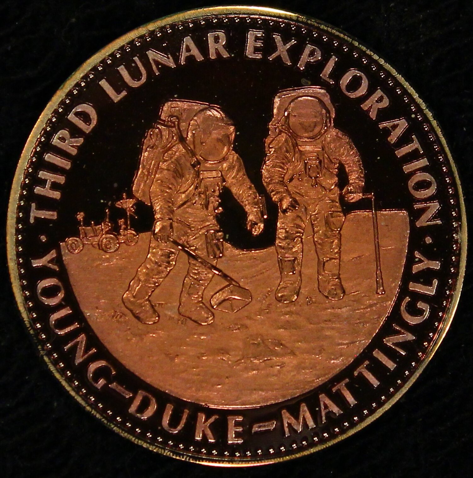The designs of the two medallions are attractive. I didn't notice it on first pass, but the first medallion is incorrect. Apollo 16 was not the third lunar exploration. It was the 5th. Apollos 11, 12, 14 and 15 all landed previously to it.