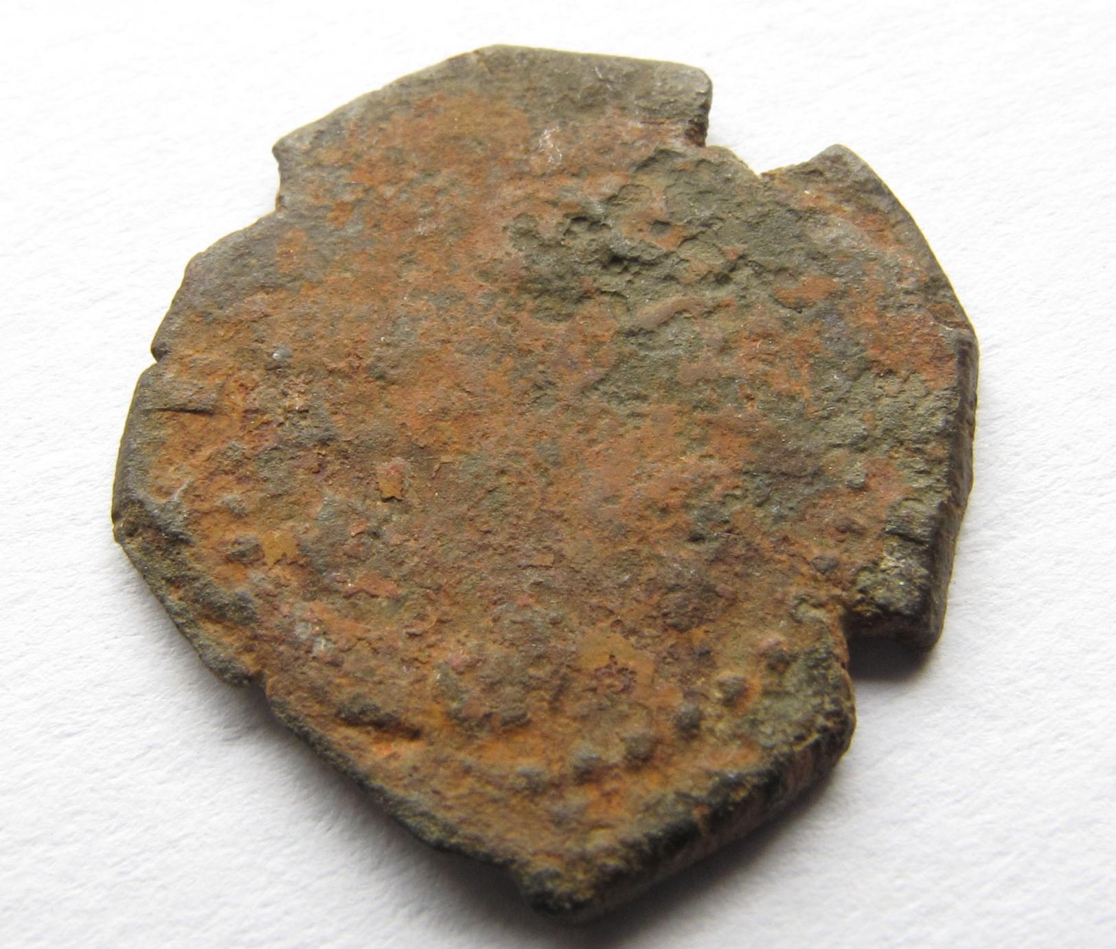 Hello, I found this coin on the River Thames a few weeks ago and at first i thought it could be Roman but I was told today by the Museum of London (they haven't seen it - just by photos) that it could be a Spanish copper cob coin. Can anybody confirm that it is and give any more details. Any help very much appreciated. Andrew