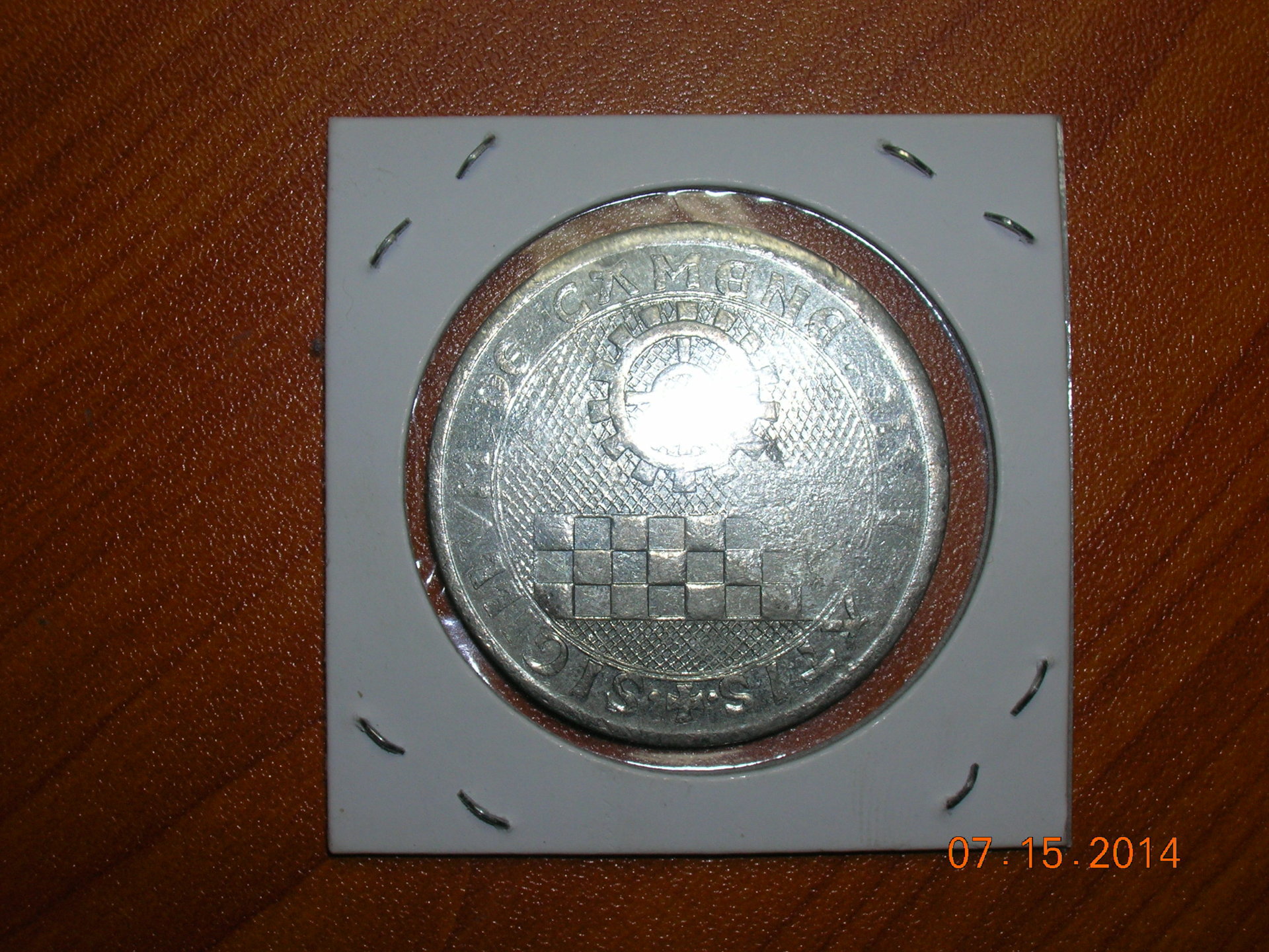 Christian, Fantastic and thank you. I have been researching this with not much luck. I believe the coin to be silver because it does not stick to a magnet, it has that ting sound but I don't have a silver tester. It does not matter its cool. The coin weighs 13.70 gm almost a half oz. I have another coin from Germany, I think that has me stumped. It says KAMEN and has the village or city seen on front but back is worn but looks to have a ships wheel and checker board image. Thanks, Steve