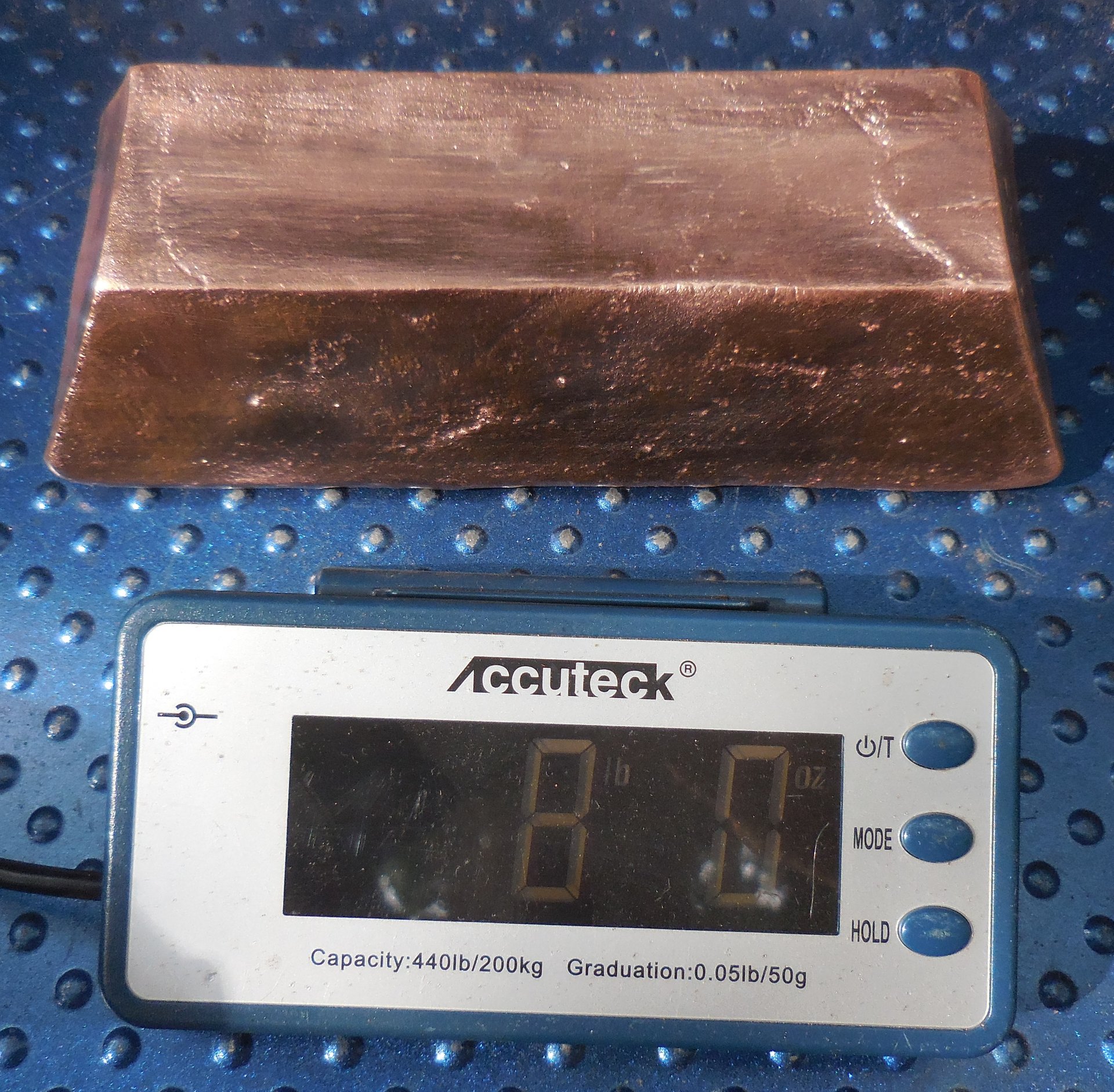 Yeah, it's gonna take some time for me to master sand casting let alone lost wax. Although, I have been researching lost foam casting and that might be the way I go. Right now I'm sitting on about a ton of #1 copper scrap so why not make bars? I use a 8kg crucible so I'm probably going to be doing 8-10 lb. bars.