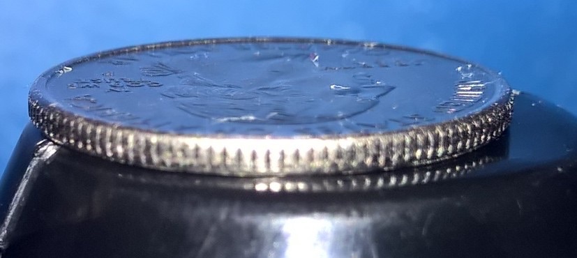 Yeah, like I said, the camera wouldn't focus on the edge at all! the edge looks normal other than the missing copper core, the reeding looks normal, rims look good, not much wear, or any tampering that I can detect. I am guessing it is just the clad layer is covering the outside completely