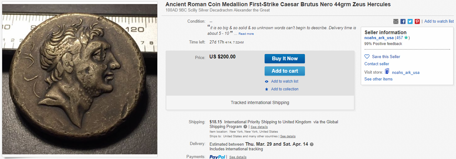 I've never purchased a coin from Ebay but the majority of the better items in my stamp collection have come from there -- like everybody here has said, actual knowledge of what you're buying combined with a healthy amount of scepticism and looking at the seller's feedback and other items on sale will take you a long way. Anyway that having been said, I submit this without further comment: