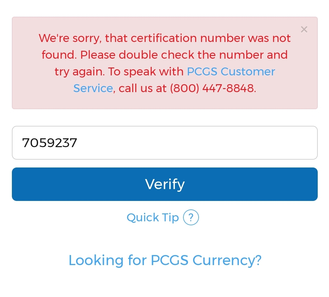 So, just having the coin isn't good enough, and just having the coin in a slab isn't good enough, and just having the coin in a slab that you prefer isn't enough -- it's also gotta be properly tracked in a database that you don't control, mediated by customer service people that can't be bothered to help you?