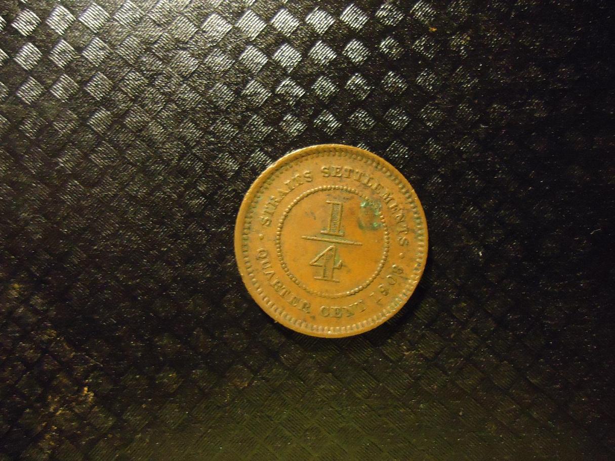 The 1908 1/4 cent is rare in higher grades. It has a mintage of 1,200,000. My Standard Catalog of World Coins is a few years old, but it lists it for $1.25 in Fine, and $6.00 in Very Fine. Jello, cool coin, I love the Straits Settlements, it was always my favorite British Commonweath to collect, I have several nice silver coins of George V and a few of Victoria, very fun coins. Your 1926 10cents has a mintage of 20,000,000.
