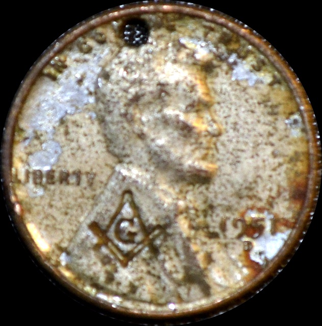 Yes, it's a Masonic penny. The hole indicates that it was probably worn by a member. It looks to have been plated at one time, but must have been buried or out in the weather for a long time to get into such bad condition.