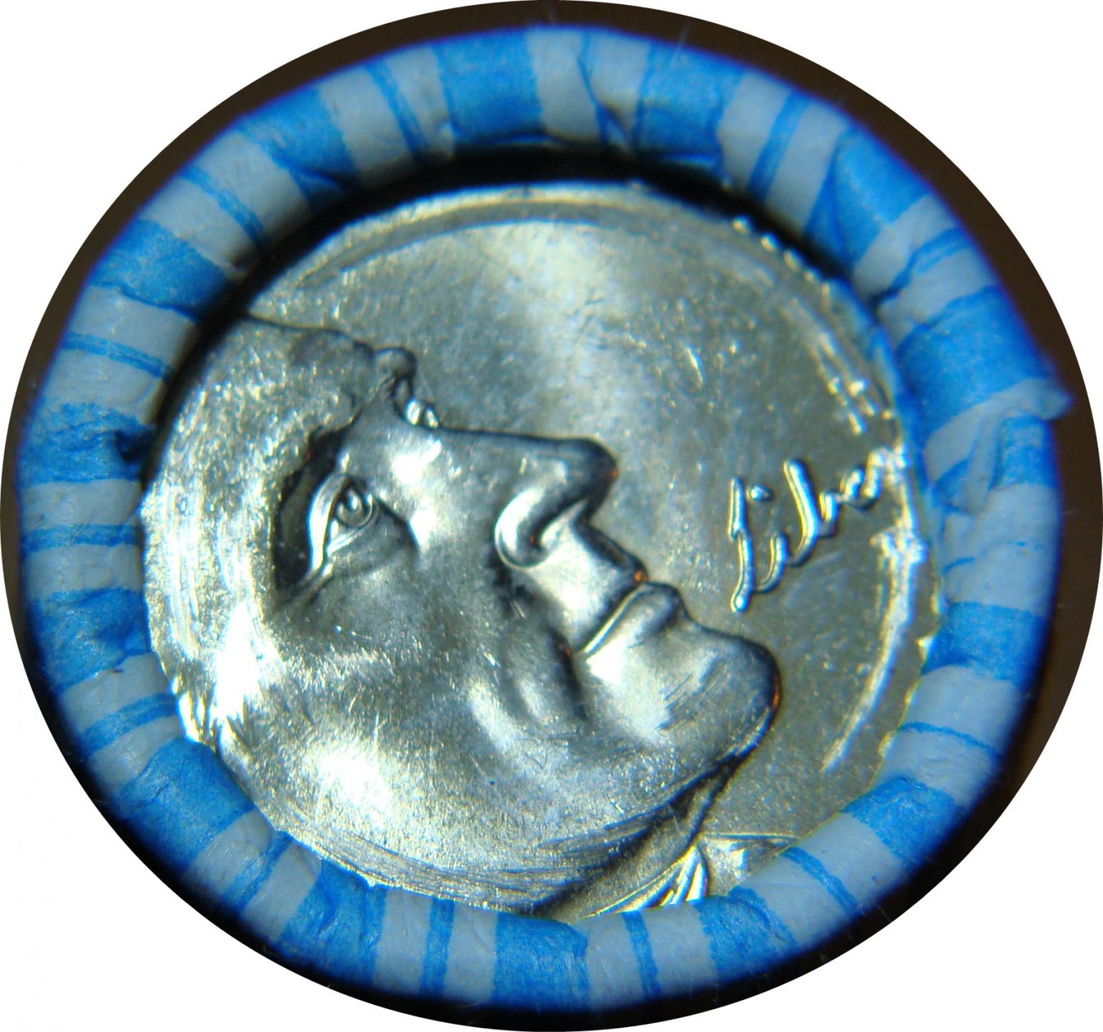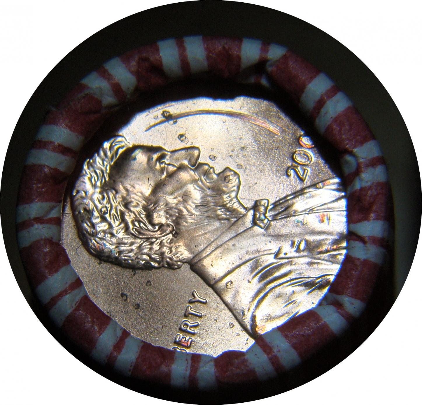 The depth of damage seems to change from type to type Here's a roll of pennies and a roll of nickles. It may be something else but it still looks like a rolling machine.