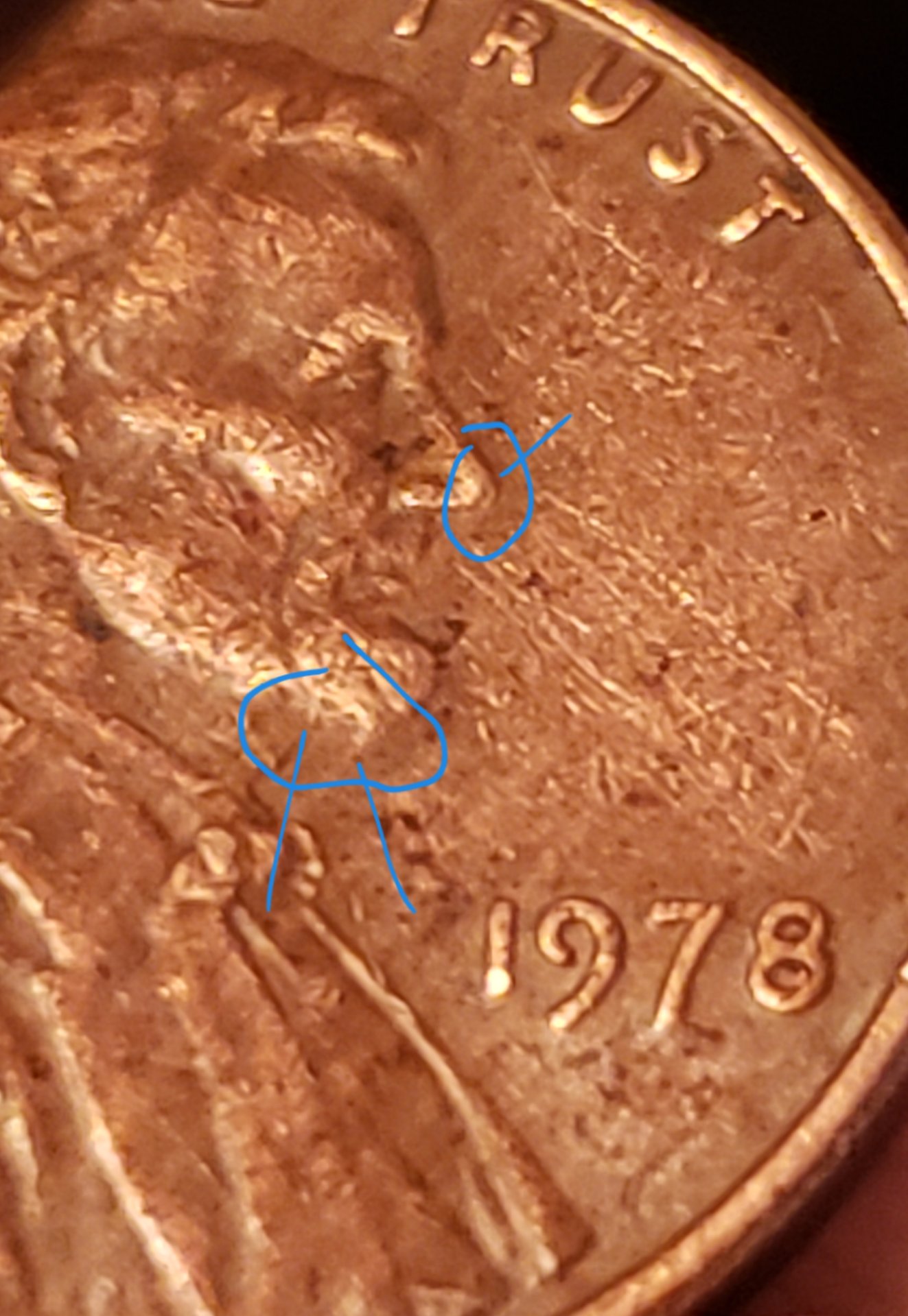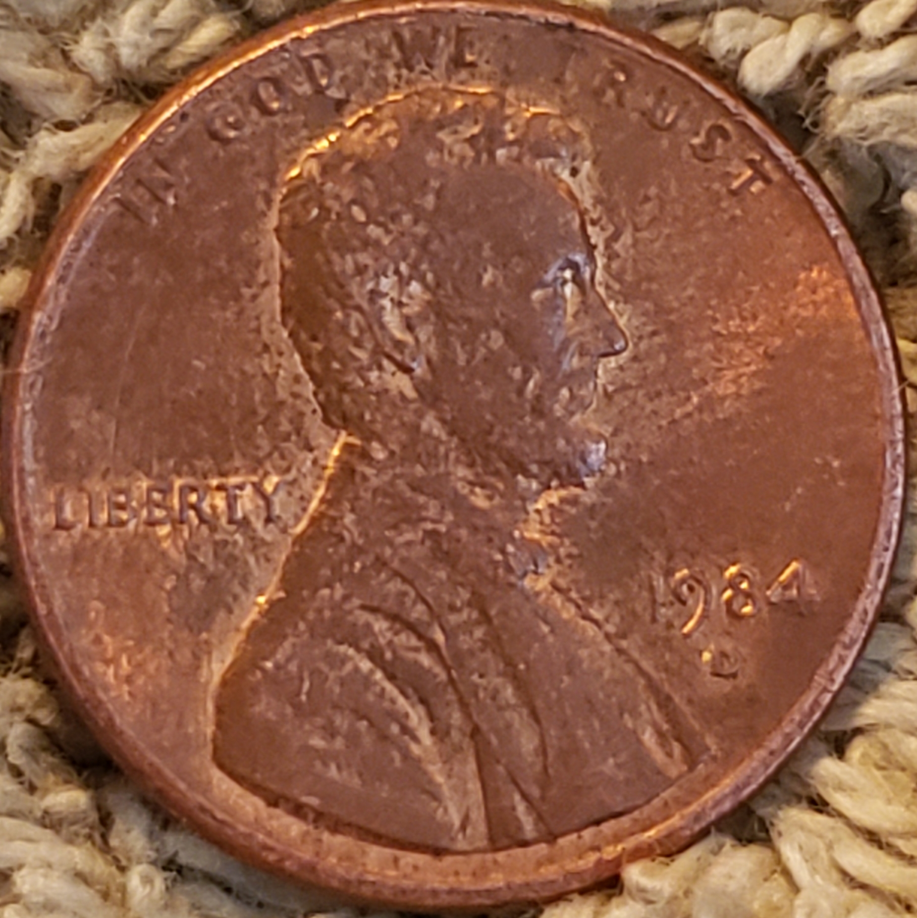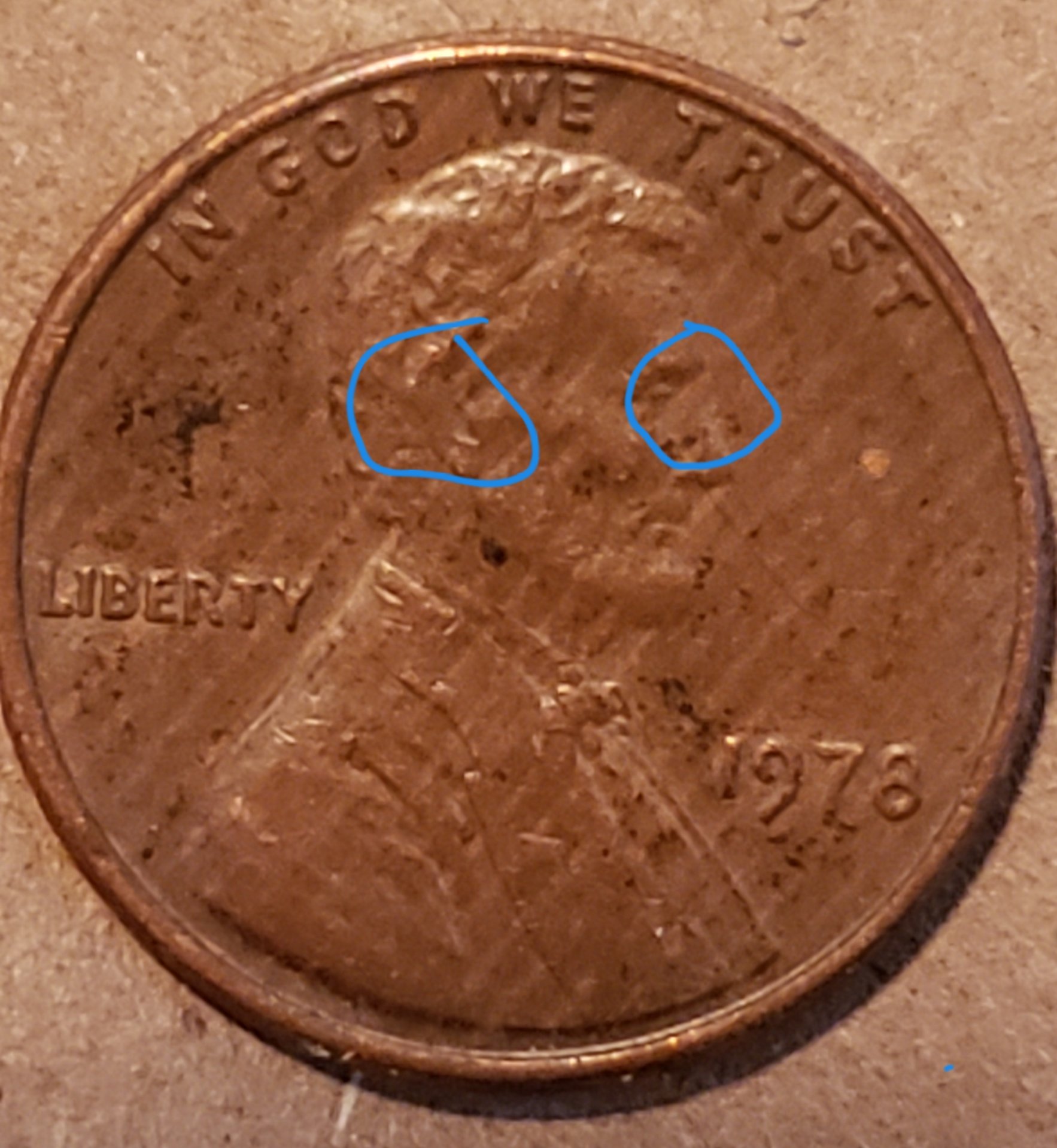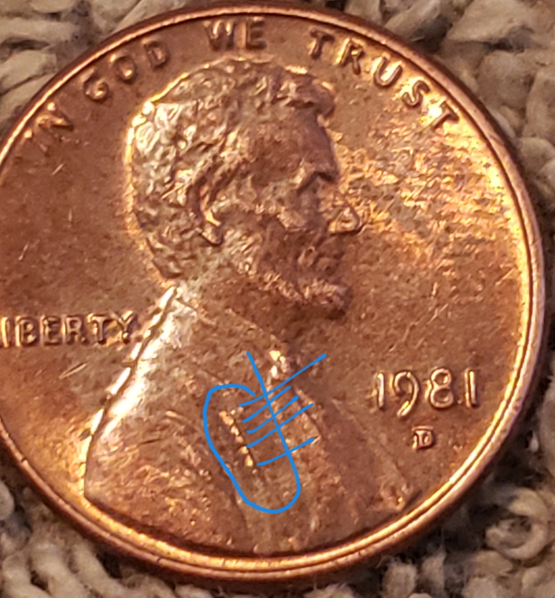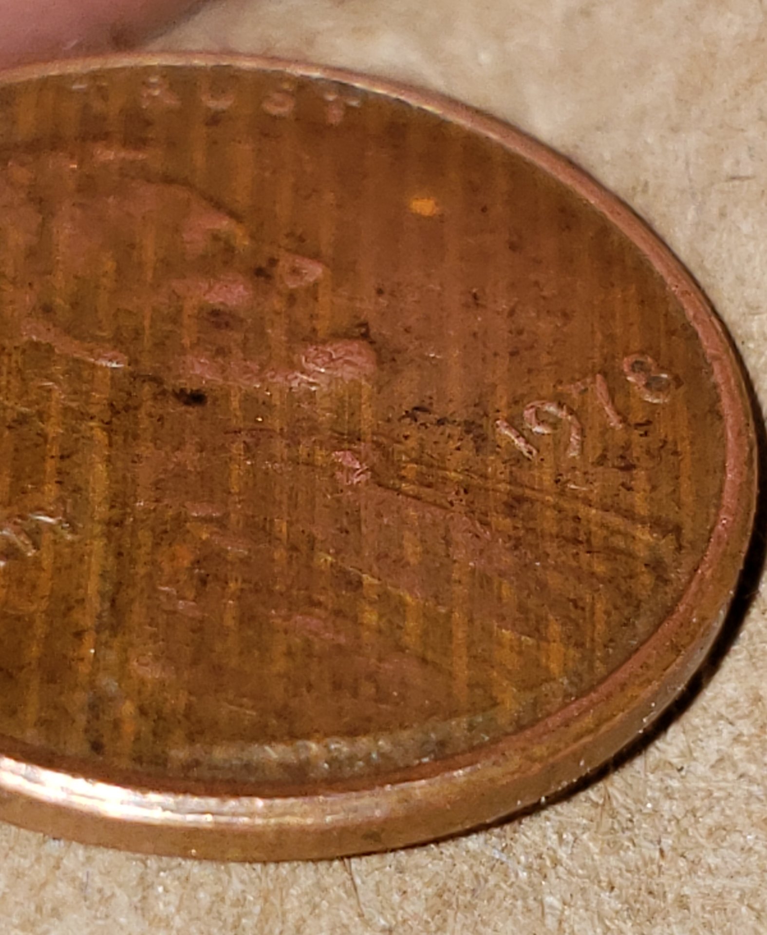 It's a pattern. If plating it would be random. No? It's too easy just to dismiss everything post 1982 as zinc issues. I just read that cloth leaves a criss-cross pattern. ...although, this is weak. I just found another with a pattern. Someone else must have been collecting "interesting" pennies and decided to roll them and take to the bank for whatever reason. This cannot be coincidence?