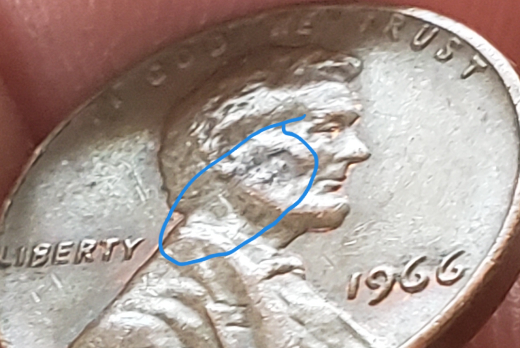 I know what it looks like but you have to look at all the dark spots all over that result from a criss-cross pattern. If you observe where I circled the "dots" are actually pressed "under" the lapel of Lincolns suit coat. That can only happen at the mint. The last one has a faint criss-cross and something left an impression on Lincolns face. Probably some debris on the cloth, which, by the way, is visible in places on the other coins.