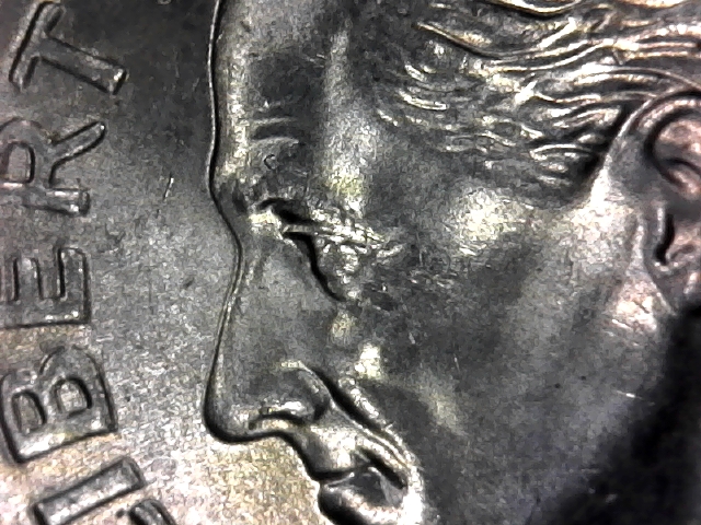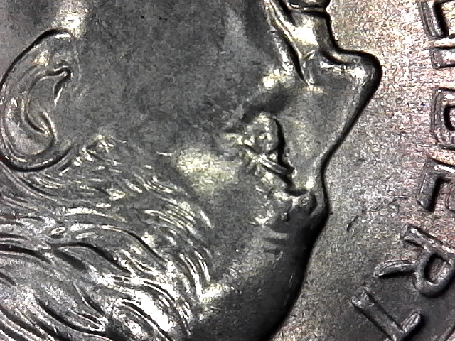 O.K., as promised I have a new camera, and an upgrade to windows 10. Still not use to it, upgraded from xp, (I know it's ancient lol) However I think the new camera makes it clear. I guess this die must have struck at sometime with a screw in the way. The impression is pretty clear. you can see the top of the screw just over Roosevelt's eye going south south east.