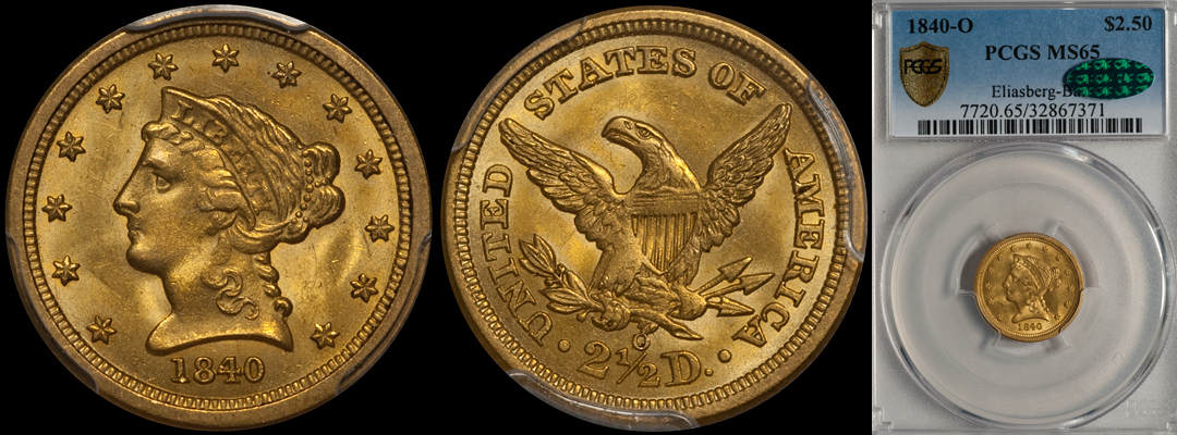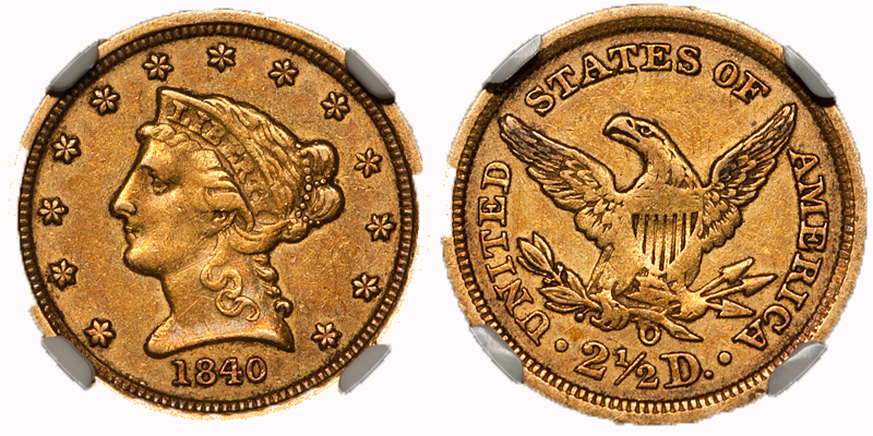 I'm curious about other's perspective on this. So, here's pictures of two gold 1840-O quarter eagles - both NGC graded au55. One has a rare, excellent strike, the other is pristine but with a far more typical weak strike - the one with the good strike is probably the best strike you will ever find in an 1840-O quarter eagle. However the coin with the good strike has some dings, especially on the reverse. I assume the price of the one with the dings is less, but I don't know that for sure. As far as I know, neither is CAC certified (which very few 1840-O quarter eagles are, anyway). The photography is quite different, so that makes it a bit more subjective, but the condition of each is clear. I know for certain that the one with the dings has a lot of luster, I can only assume the one with the weak strike has good luster as well. Which would "you" prefer, and why? Or are they equally desirable for different reasons?