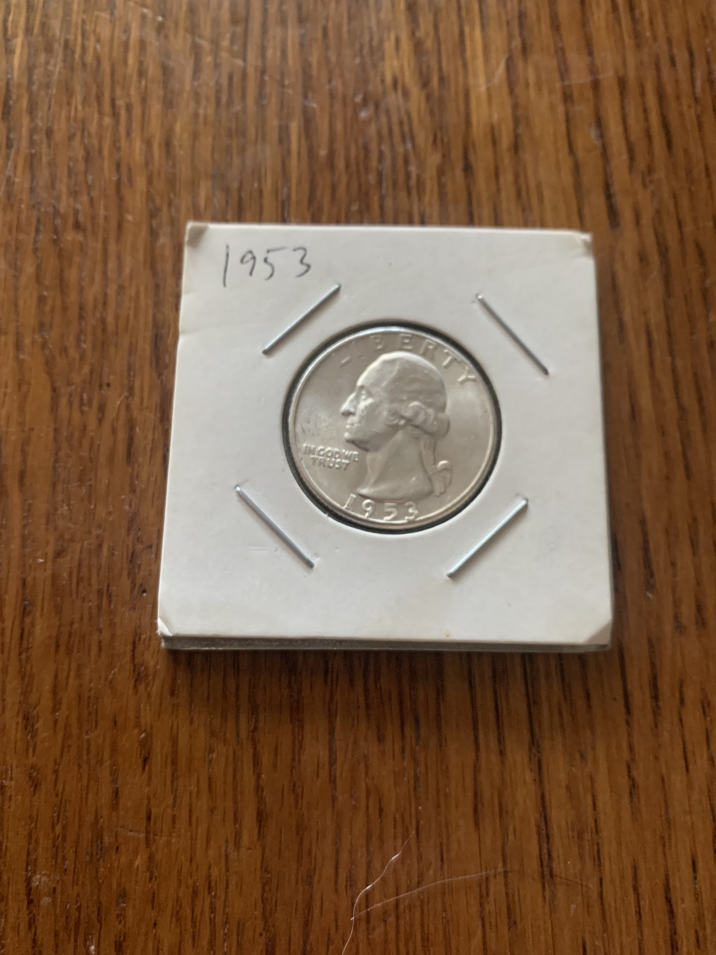 I have (technically my parents own it) but I have a 1953 quarter. When you have is straight looking at the heads side you flip it over the tails side is turned to the left. Is it worth anything?