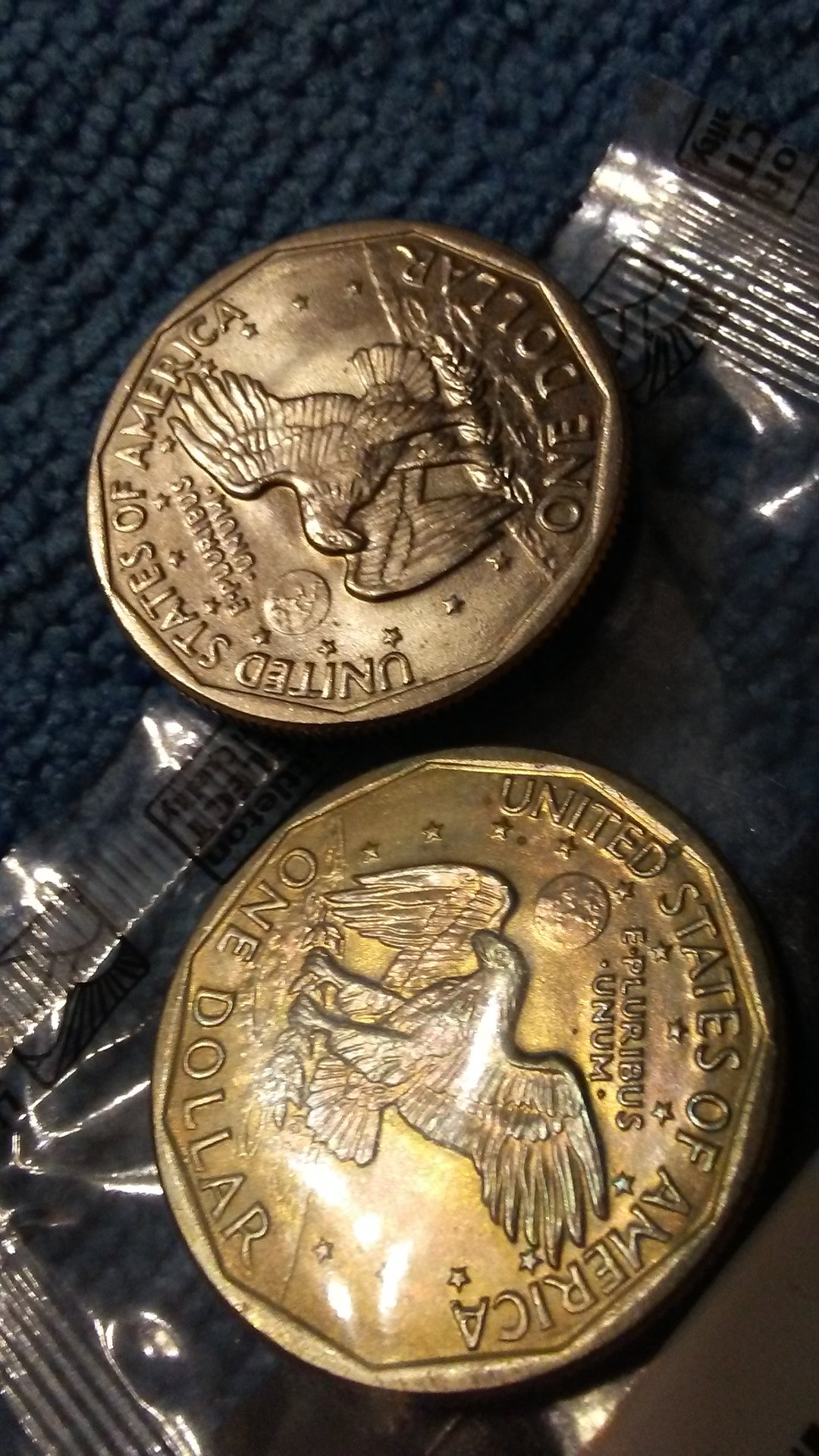 I got some coins from littleton coin company. I noticed this Susan b has some rainbow coloring to it. Any thoughts about it? They want $7.50, but I don't need it for my collection.