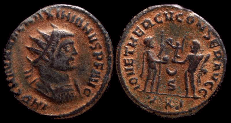 I did not know it was called Syrian Red patina, thank you for the info. I have one that is that same patina... RI Diocletian Ӕ Quinarius 1.46g 16mm Rome AD 284-305 IOVI CONSERVAT AVGG, Jupiter stndng thunderbolt sceptre RARE RIC 193