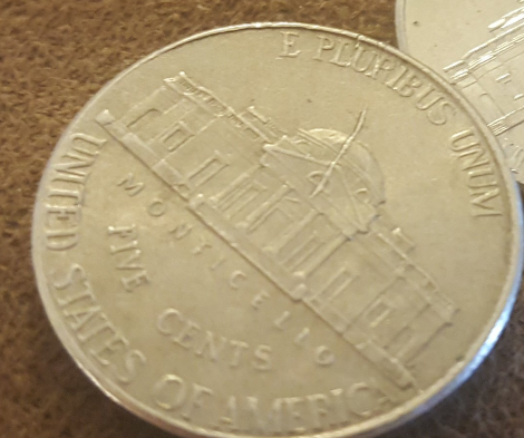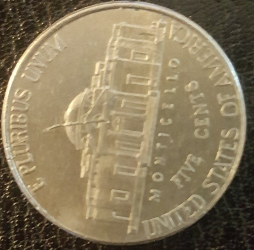 Hello, while going through saved change I noticed a 2010P nickel with a sword or spear like object going through Monticello. It is raised and very prominate, not groove or scratch like. I will attach some pics . Not sure if maybe it was made over the Buffalo error coin or something else. Any help would be great. Thank you
