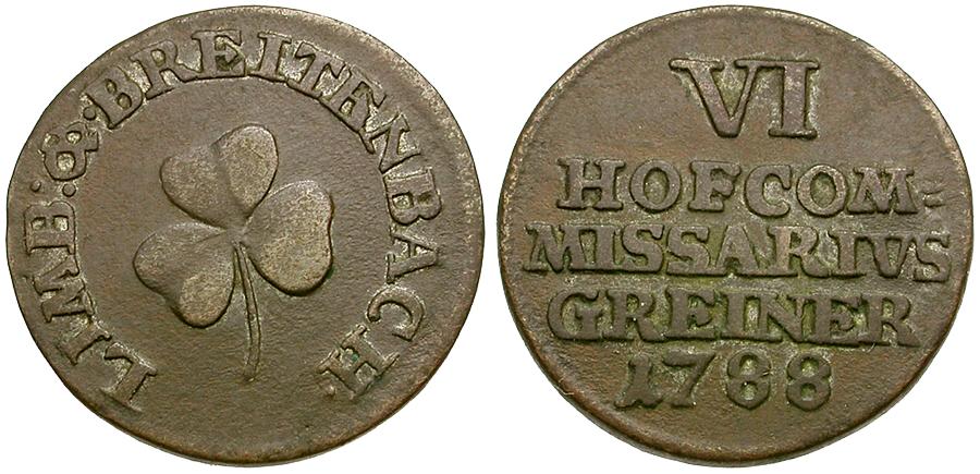 A neat granary token valued at 6 Kreuzers from Limbach and Breitenbach. 40456.jpg