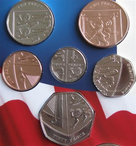 they are the definitive isue from the UK now and hae replaced the heraldic designs of the previous set. the pound coins depicts the full shield which you see when you lay the other coins out on the table. anyone else who wants one but unfortunately they are loose and not in a folder, drop me a line.
