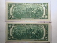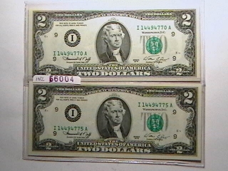 Just out of curiousity, how much profit do you think counterfeiters make, by bleaching a $1 bill, and printing a $2 bill on the same paper, which of both denominations, os devoid of security features? I wonder if they would make fifty cents? A quarter, perhaps? Whatever it is, it can't be much, because You would probably hear about it happening more. I just seems like a really good idea for criminals, if there is even a small payoff, because people rarely check $1 and $2 bills, and even if they do, WHAT are they checking for? I think that, if the $2 bill is redesigned, as the BEP lady said it would be, of all security features that should be added, I would say, at least a watermark or two, if not also a security thread. I once read, about 20 years ago or so that they were considering putting a security thread in the $1 bill. Not sure about the $2 bill, but it would seem logical.