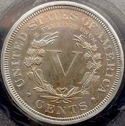 Mine is a PCGS PR-64 Liberty nickle, no real story behind it. It is just one of my recent purchases. Here is the reverse.