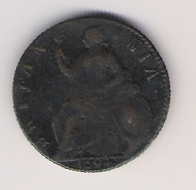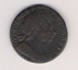 I don't think I see one of these here. Wish I could offer a better picture. 1694 Half Penny of William & Mary.