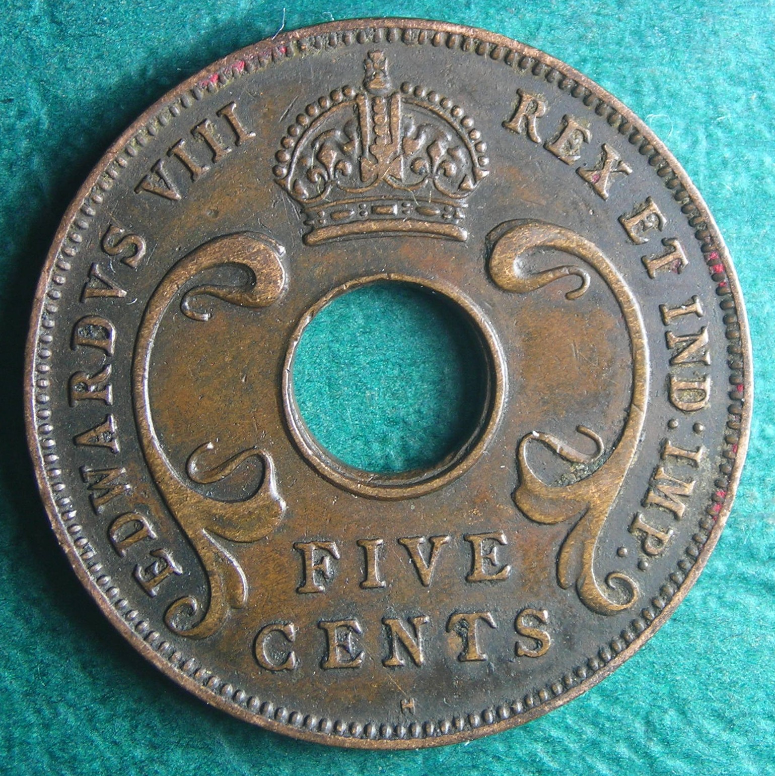 Thank you! I have always liked that particular type of coin, with the lion and mountain. I am quite partial to East Africa, as I spent some time there and still have a friend who lives near Mombasa. Here is a neat looking EA coin, Edward VIII, 1936 H 5 cents 1936 EA-H 5 c obv.JPG 1936 EA-H 5 c rev.JPG Dang! I did not realize I was posting an identical coin!