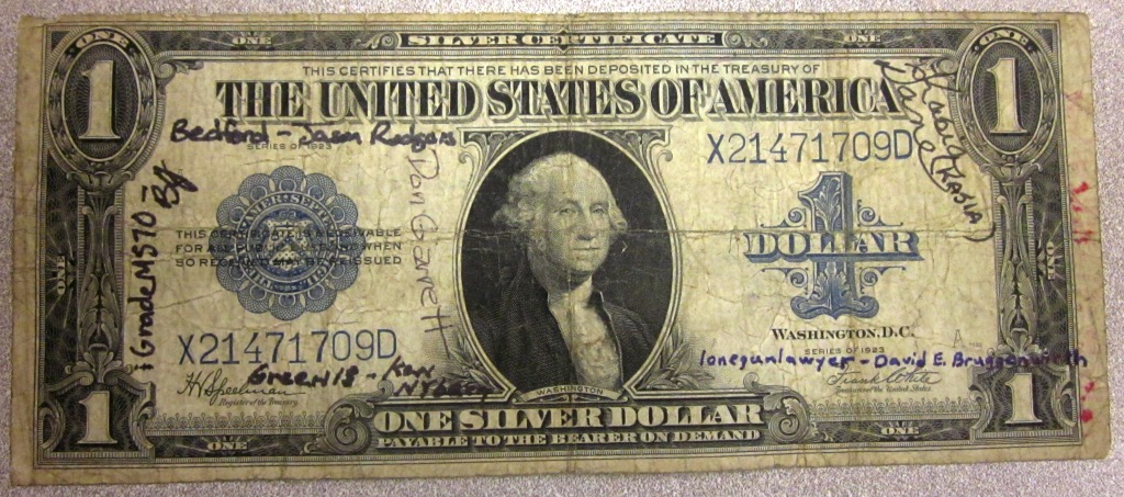 The CoinTalk short snorter of members 1923 $1 Silver Certificate