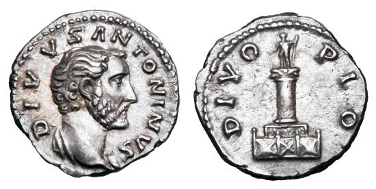 I have only six Antoninus Pius coins (one issued after his death), and two issued for Faustina I (one lifetime). Antoninus Pius AE As, 148 AD, Rome Mint. Obv. Laureate head right, ANTONINVS AVG PIVS P P TR P XII / Rev. Elephant walking left, MV-NIFICENTIA AVG; in exergue COS IIII/S C in two lines. RIC III 863, Sear RCV II 4308 (var.), BMCRE 1840. 29 mm., 10.4 g. (Issued to commemorate games and spectacles held to celebrate 900th anniversary of Rome.) Antoninus Pius AR Denarius, 149 AD. Obv. Laureate head right, ANTONINVS AVG PIVS P P TR P XII / Rev. Annona standing left holding corn ears over modius left and anchor right, COS IIII. RIC III 175, RSC II 284, BMCRE 657. 19.5 mm., 3.242 g. Antoninus Pius Billon Tetradrachm, Year 12 (148-149 AD), Alexandria, Egypt Mint. Obv. Laureate, draped, and cuirassed bust right, ΑΝΤѠΝ(Ɛ)ΙΝΟϹ ϹƐΒ ƐVϹƐΒ (beginning at 2:00) / Draped bust of Zeus-Ammon right, crowned with disk [partially off flan], L ΔѠΔƐΚΑΤΟV [Year 12 spelled out] (clockwise from lower left). RPC IV.4 Online 13625 [temporary number] (see https://rpc.ashmus.ox.ac.uk/coins/4/13625) [this coin is Specimen 13, ex. Emporium Hamburg 71, 8 May 2014, lot 186; see https://rpc.ashmus.ox.ac.uk/coin/112517] ; Emmett 1442.12; Milne 1972; Dattari (Savio) 2408; Köln (Geissen) 1588; Sear RCV II 4360. 23 mm., 12.60 g. (Purchased from Herakles Numismatics, Sept 2020). Antoninus Pius Billon Tetradrachm, Year 17 (153-154 AD), Alexandria, Egypt Mint. Obv. Laureate bust right, traces of drapery right, ANTѠNINO - CϹ - ƐΒ ƐVϹƐΒ (counterclockwise from upper right beginning at 2:00)/ Rev. Isis Pharia standing right on prow, holding billowing sail [and sistrum (worn off)] with right arm extended, LI - Z [= Year 17] across fields [Z at top of right field]. Emmett 1403.17; Sear RCV II 4365; Milne 2207; Dattari (Savio) 2261; Köln (Geissen) 1693; RPC IV.4 Online, 13783 (temporary) (see https://rpc.ashmus.ox.ac.uk/coins/4/13783) [same as RPC IV.4 Online, 14301 (temporary) (see https://rpc.ashmus.ox.ac.uk/coins/4/14301)?]. 22.85 mm., 8.46 g. Antoninus Pius Billon Tetradrachm, Year 23 (159-160 AD), Alexandria, Egypt Mint. Obv. Laureate and draped bust right, ΑΝΤѠΝΙΝΟϹ - ϹƐΒ ƐVϹƐΒ (counterclockwise from upper right) /Isis crowned with disk, horns, and plumes, seated right offering her right breast to crowned Harpocrates [“Horus-as-Child”] seated on her lap; Harpocrates extends his right hand towards her and holds lotus flower in left hand; crowned falcon [Horus] perched right on left end of back of throne, L - Γ [G] /K [= Year 23] across field. Emmett 1402.23; Milne 2403; Dattari (Savio) 2257; RPC IV.4 Online, 13938 (temporary) (see https://rpc.ashmus.ox.ac.uk/coins/4/13938); Köln (Geissen) 1842 [same dies, see RPC Online 13938 at the link provided, Example 3]; Sear RCV II 4377; K&G 35.810. 21x28 mm., 11.67 g. Ex. Harlan J. Berk, Ltd., 168th Buy or Bid Sale, March 16, 2010, Lot 475. Divus Antoninus Pius AR Denarius. Obv. Bare-headed bust right, slight drapery, DIVVS ANTONINVS / Rev. Funeral pyre, CONSECRATIO. RIC III 438MA , RSC II 164a, Sear RCV II 5193, BMCRE 60 (MA). 17.46 mm., 3.37 g. Faustina I [Senior] [wife of Antoninus Pius], AR Denarius 139-Oct 140 AD [lifetime issue], Rome Mint. Obv. Diademed and draped bust right, FAVSTINA AVGVSTA / Rev. Concordia standing left, holding patera with extended right hand and double cornucopiae with left arm, CONCORDIA AVG. RIC III 335 Antoninus Pius, RSC II 151, Sear RCV II 4668 (ill.), BMCRE 133, Dinsdale 008710 [Dinsdale, Paul H., Antoninus Pius and Marcus Aurelius Caesar AD 138-161: Antonine Coinage (2018) at p. 99; photo at p. 100] [see http://romanpaulus.x10host.com/Antoninus/04 - Faustina I - Undated 139-140 (med_res).pdf pp. 10-11]. 19 mm., 2.84 g. Diva Faustina I [Senior] (wife of Antoninus Pius), AR Denarius, prob. 150-160 AD [see Dinsdale, infra at p. 216 -- including this type among coins issued upon and after 10th anniversary of Faustina’s deification]. Obv: Draped bust right, DIVA FAVSTINA / Rev: Ceres, veiled, standing left, holding torch in left hand and holding right hand up in greeting, CONSECRATIO. RIC III 382b corr.*, RSC II 165a, Sear RCV II 4593, Dinsdale 020610 [Dinsdale, Paul H, Antoninus Pius and Marcus Aurelius Caesar AD 138-161: Antonine Coinage (2018) at p. 249; photo at p. 254]. 17 mm., 3.3 g. * RIC III 382b erroneously describes Faustina’s bust on obverse as veiled. (RIC III 382a has different obverse legend [DIVA AVG FAVSTINA]).