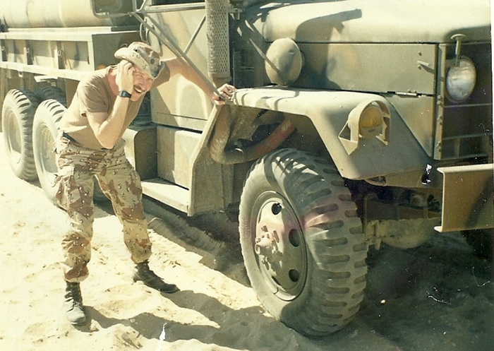 Here is a picture of my brother before one of his first deployments to the big sandbox. He has since been there four times and is getting ready for another deployment.