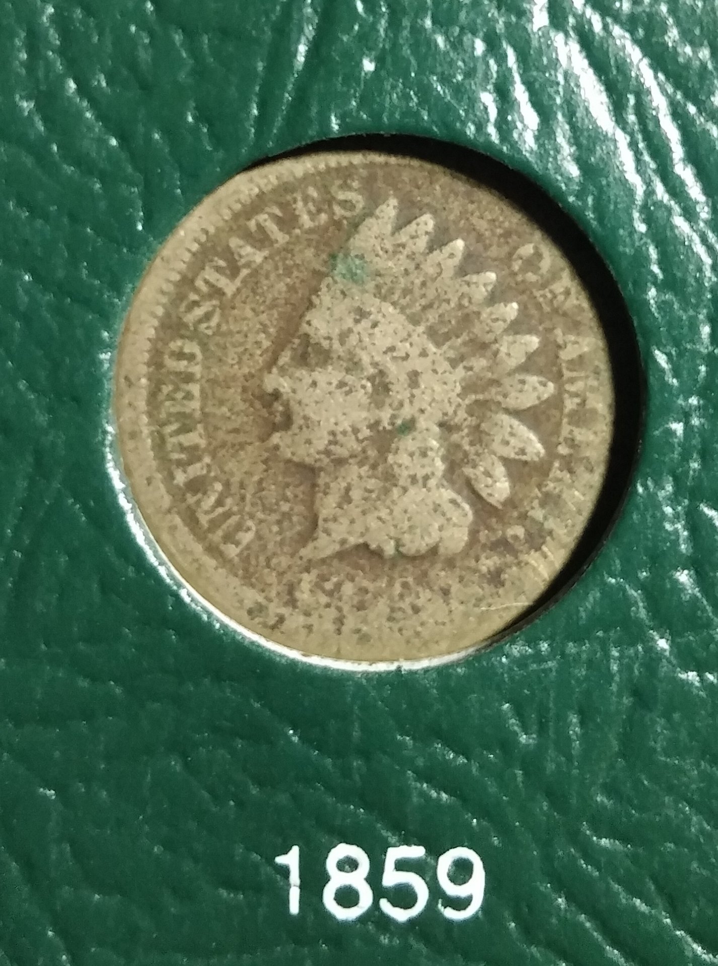 It is an 1859; that is the only year that did not have the shield on the reverse between the top of the wreath.