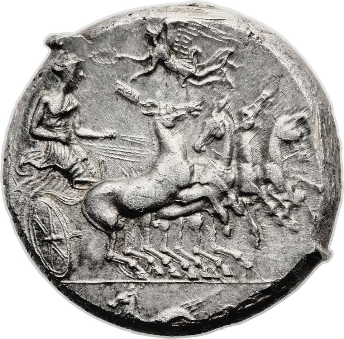 Himera Tetradrachm. A city in Sicily. The Sicilians were known for creating the most beautiful coins. A coin in that condition can fetch around 4K.