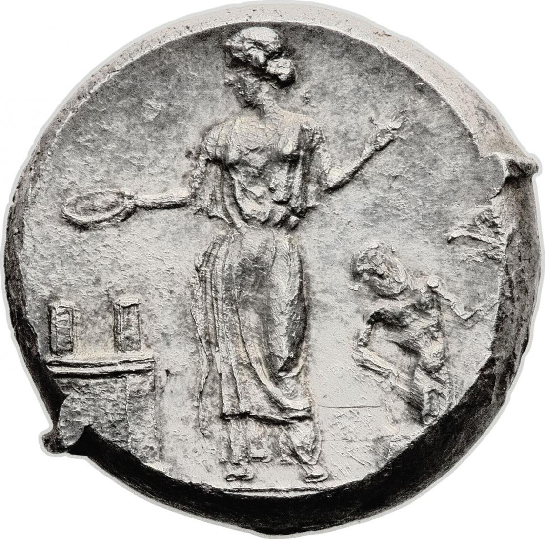 http://www.britishmuseum.org/explore/highlights/highlight_objects/cm/s/silver_decadrachm.aspx Above is my favorite but it currently resides in the British Museum. My coin is below. It their day, you could get 200 of mine for one of the big silvers. The exchange rate is worse now. Much worse.