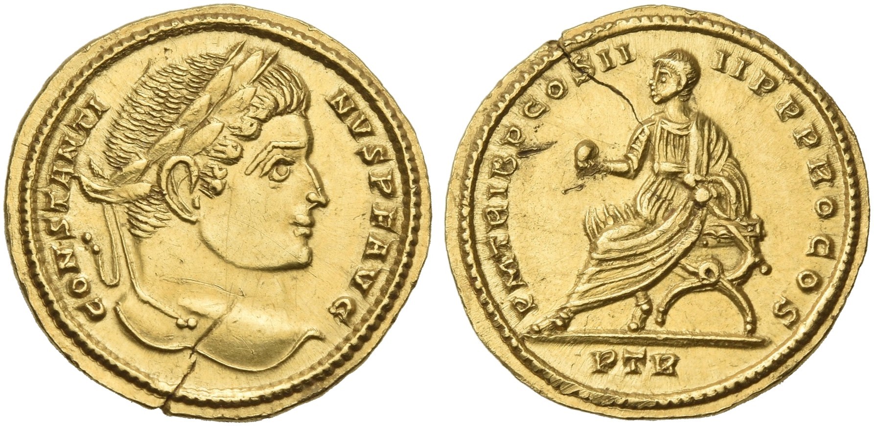 I managed to win four coins. Two were Republican denarii one with a RBW pedigree and two Imperial coins. One was a denarius and this one. This is the only coin I purchased of any note. Solidus of Constantine Trier mint It has some issues but I liked the style and it has a good pedigree.