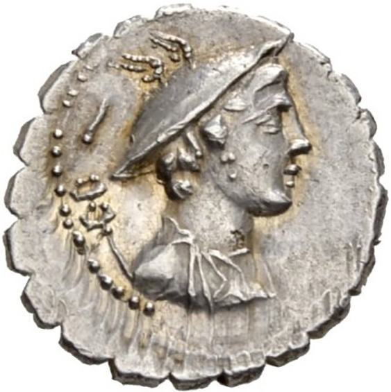 For those intersted in Jochen's writeup, I'd also recommend Yarrow "Ulysses's Return and Portrayals of Fides on Republican Coins" Essays Witschonke (ANS, New York: 2015). My offstruck example of the OP type below: