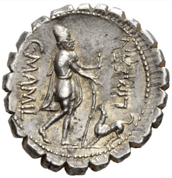 Dear Friends of ancient mythology! At first glance, this is a coin showing the return of Ulixes (Odysseus). But in fact it is about Sulla, as we will see. The coin: Roman Republic, C. Mamilius Limetanus, gens Mamilia AR - denarius serratus, 20mm, 3.78g, 45° Rome, 82 BC Obv.: Bust of Mercurius, draped and with winged petasos, r.; caduceus over r. shoulder; upper left A (control mark) Rev.: left from top to Bottom: C.MAMIL, right from bottom to top LIMETAN (TA ligate) Ulixes (Odysseus), bearded, with mantle and pilos, clad as beggar, advancing r., resting with raised l. hand on staff and stretching r. hand to his old dog Argus, who stands r. before him looking up to him. Ref.: Crawford 362/1; Sydenham 741; RCV 282; Albert 1253; Mamilia 6 rare, SS Notes: (1) The gens Mamilia claims her origin from Mamilia, daughter of Telegonos, the son of Circe from Ulixes, who himself was a son of Mercurius: Telegonos is said to be the founder of Tusculum, which was the city of the gens Mamilia (2) Lat. pileus = Greek pilos, a felt cap, often equated with the bonnet of liberty worn by the French Jacobins, but in error Mythology: (1) After the fall of Troy Odysseus has set to return to Ithaka. He has known that his journey would last 10 years due to the merciless hate of Poseidon. Here is not the place to spread out all his countless adventures. But Calypso alone hold him for 7 years on her island of Ogygia. When Poseidon once was absent Zeus sent Hermes to Calypso with the order to release Odysseus. Yet he built a float and sailed away. When Poseidon recognized his escape he sent a heavy storm so that Odysseus could save himself just barely to the beach of the island of Drepane where he exhausted fell asleep. This island belonged to the Phaiakians, known for their hospitality. Nausikaa, the king's daughter, found the beached next morning and took him to the palace of her royal parents, Alkinoos and Arete. He was dressed and hosted friendly. But Odysseus longing for coming home asked them for bringing him back to Ithaca. So Phaiakian companions brought him to Phorkys on Ithaca putting him down gently on the sand of the beach not to disturb his sleep of fatigue. While Odysseus was twenty years away from Ithaca more than 120 impudent suitors have had gathered in his palace who courted his wife Penelopeia hoping to get his throne. During the whole time they lived and feasted in his palace, drank his wine, butchered his pigs, sheep and cattle, and pleasured themselves with his maidservants. Telemachos, the son of Odysseus, being on search for his father at Menelaos in Sparta, they wanted to kill when he came home. When Odysseus awoke Athena appeared, transformed him into a beggar and brought him to Eumaios his loyal old swineherd, which didn't recocnized him but hosted him friendly. Athena sent back Telemachos to Ithaca where father and son recognized each other with the help of Athena. Disguised again as beggar Odysseus betake himself to his palace where he met Melantheus, the goatherd, who mocked him and kicked him with his foot. But Odysseus still suspended his avenge. When he entered the court-yard of his palace we come to the scene which is depicted on the coin. (2) Here is the relevant text from the Odyssey (Book 17): As they were speaking, a dog that had been lying asleep raised his head and pricked up his ears. This was Argos, whom Odysseus had bred before setting out for Troy, but he had never had any enjoyment from him. In the old days he used to be taken out by the young men when they went hunting wild goats, or deer, or hares, but now that his master was gone he was lying neglected on the heaps of mule and cow dung that lay in front of the stable doors till the men should come and draw it away to manure the great close; and he was full of fleas. As soon as he saw Odysseus standing there, he dropped his ears and wagged his tail, but he could not get close up to his master. When Odysseus saw the dog on the other side of the yard, dashed a tear from his eyes without Eumaios seeing it, and said: "Eumaios, what a noble hound that is over yonder on the manure heap: his build is splendid; is he as fine a fellow as he looks, or is he only one of those dogs that come begging about a table, and are kept merely for show?" "This dog," answered Eumaios, "belonged to him who has died in a far country. If he were what he was when Odysseus left for Troy, he would soon show you what he could do. There was not a wild beast in the forest that could get away from him when he was once on its tracks. But now he has fallen on evil times, for his master is dead and gone, and the women take no care of him. Servants never do their work when their master's hand is no longer over them, for Zeus takes half the goodness out of a man when he makes a slave of him." So saying he entered the well-built mansion, and made straight for the riotous pretenders in the hall. But Argos passed into the darkness of death, now that he had seen his master once more after twenty years. Note: Naturally Odysseus' dog is the symbol of unconditional loyality, which was demanded from Sulla too (see 'History'!). (3) What happened thereafter: To check the suitors Odysseus paced from one to the other and asked for leftovers. But the suitors were not only greedy but stingy too. The most impudent of them all was Antinoos, who even threw a stool at him. On the next day Penelopeia announced that she was ready to take as spouse the one who was able to shoot an arrow through twelve axe holes, and gave them the bow of Osysseus. But no one of the suitors could even bend the bow. Thereupon Odysseus took the bow, bent the bow easily and shot an arrow through all twelve axe holes. Odysseus announced himself as the true king and killed Antinoos by a shot through his throat. Horror-stricken the suitors jumped up, but Odysseus shot one after the other with his arrows. In the same time Athena in the shape of a swallow flew twittering through the hall, while Odysseus