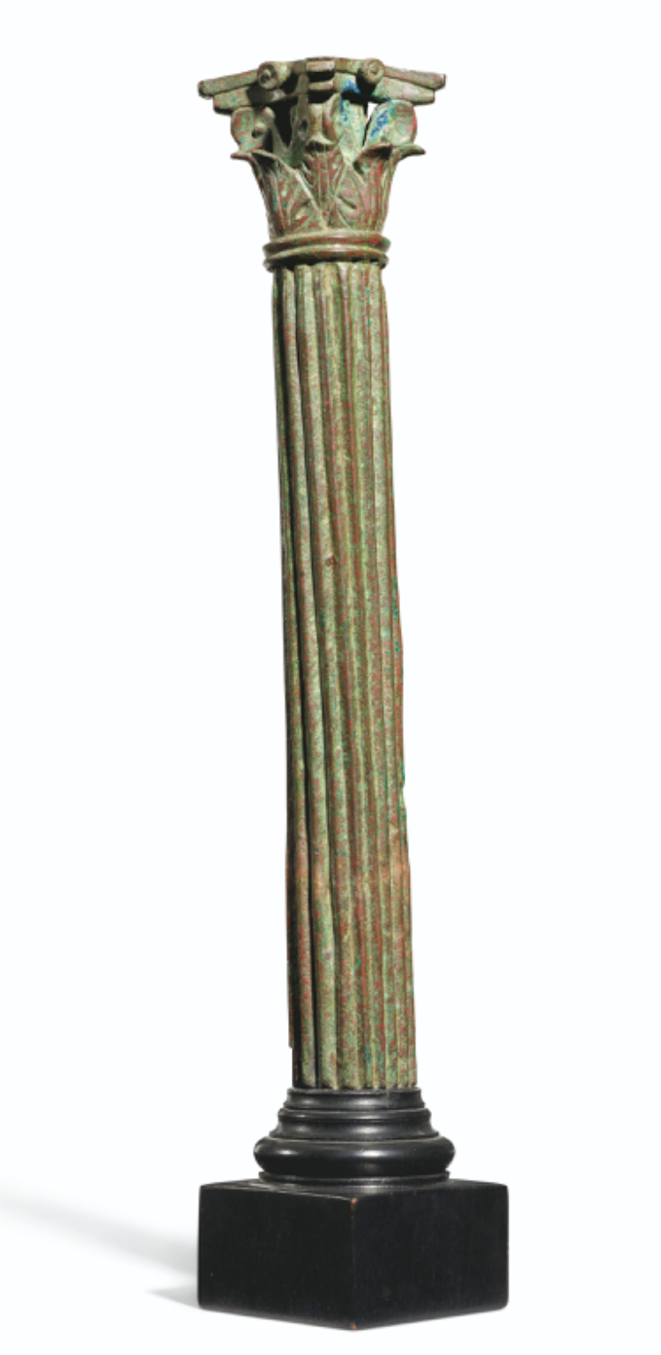 A rostral column (a column decorated with ships' prows) surmounted by a cloaked figure (Augustus?). Legend: IMP CAESAR