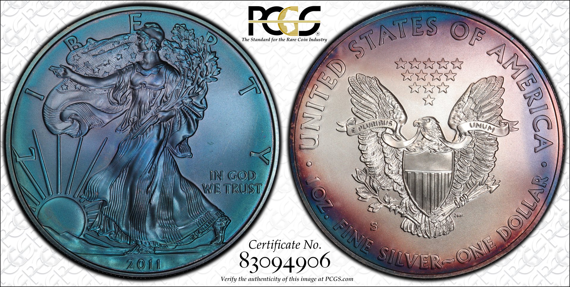 The only thing I can say about some of the 2011 Silver Eagles is that a lot of the ones from the Anniversary sets came with the capsules loose and thus the coins were able to tone from contacting the velvet. I believe those that gas slabs or AT Eagles have taken this to their advantage.