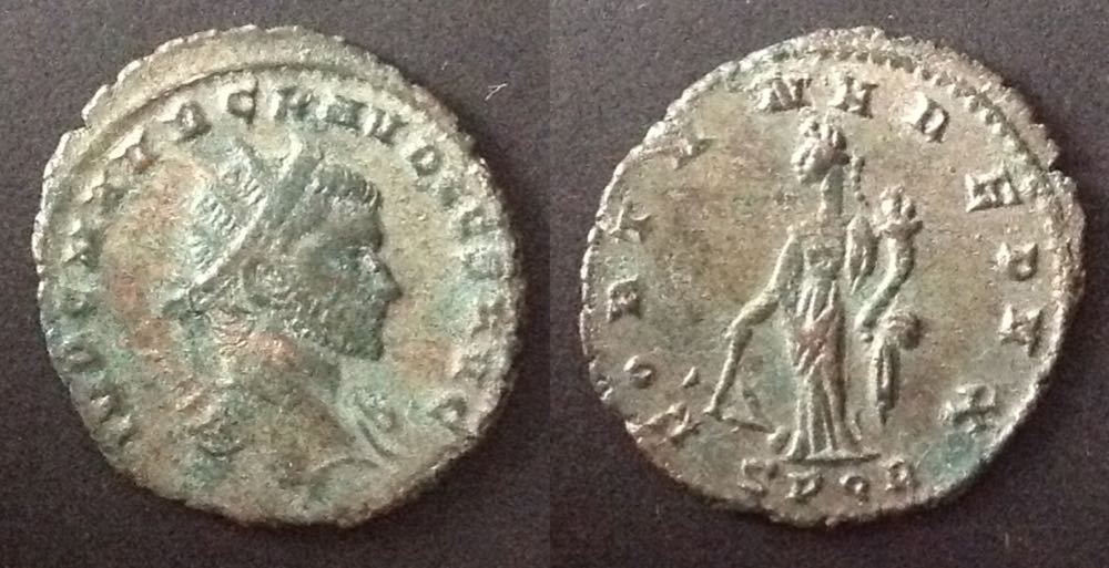I have one of these of a different reverse legend. These are also cool because of the longer obverse legend that you don't usually see for good ole Claud. It's not in great shape but I like it. Edit: Also note the 3 dots under the obverse bust. Claudius II Cyzicus IMP C M AVR CLAVDIVS AVG Radiate bust right, slight drapery on left shoulder, under bust PAX AETERNA Pax standing left, holding olive branch upward in right hand, scepter in left SPQR in exergue RIC V, Part I, 237a